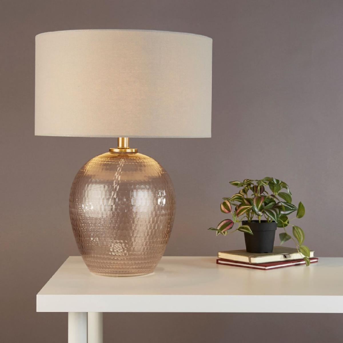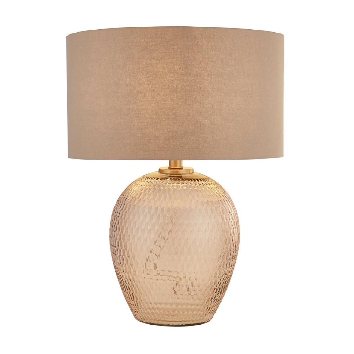 Simple yet stylish, this glass base table lamp will suit both modern and more traditional homes. With an amber glass base and grey textured shade, this eye-catching table lamp will compliment most interior decor styles.