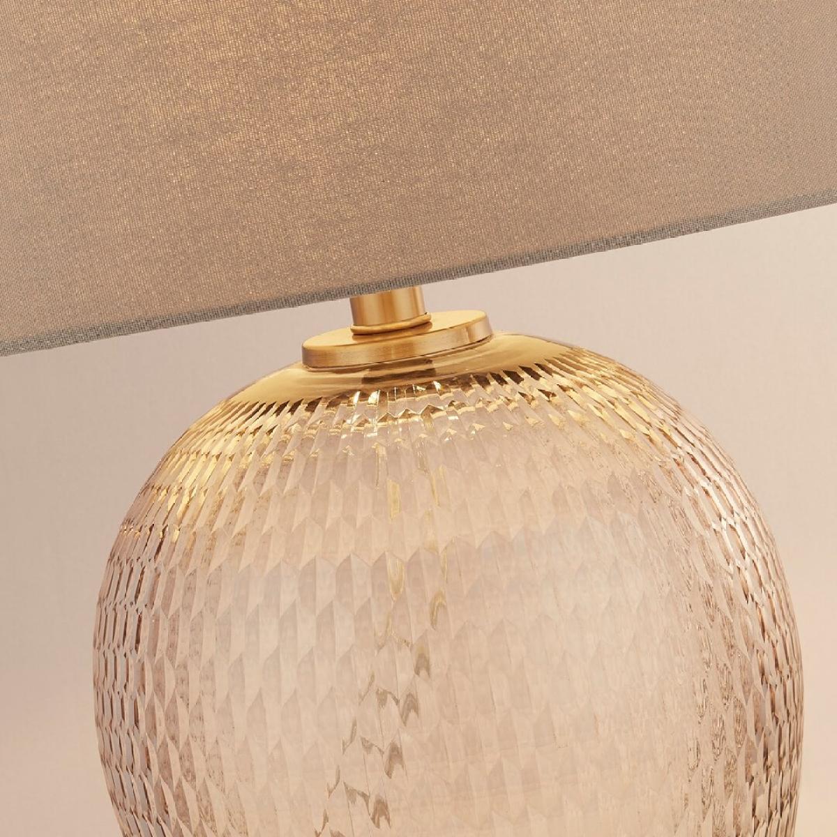 I love this sand-coloured glass base lamp for its versatile aesthetic and tactile surface, which adds subtle texture to a variety of interiors. It works particularly well in contemporary or minimalist settings, where its clean lines and soft glow can serve as a calming focal point. To style it effectively, consider pairing it with neutral or soft pastel shades to enhance its understated elegance, or use it as an accent piece on a sideboard or bedside table. Practical tips include placing it where it can be easily accessed for bedside reading or to illuminate a cosy corner, and combining it with other metallic accents or matte finishes to create a balanced, cohesive look.