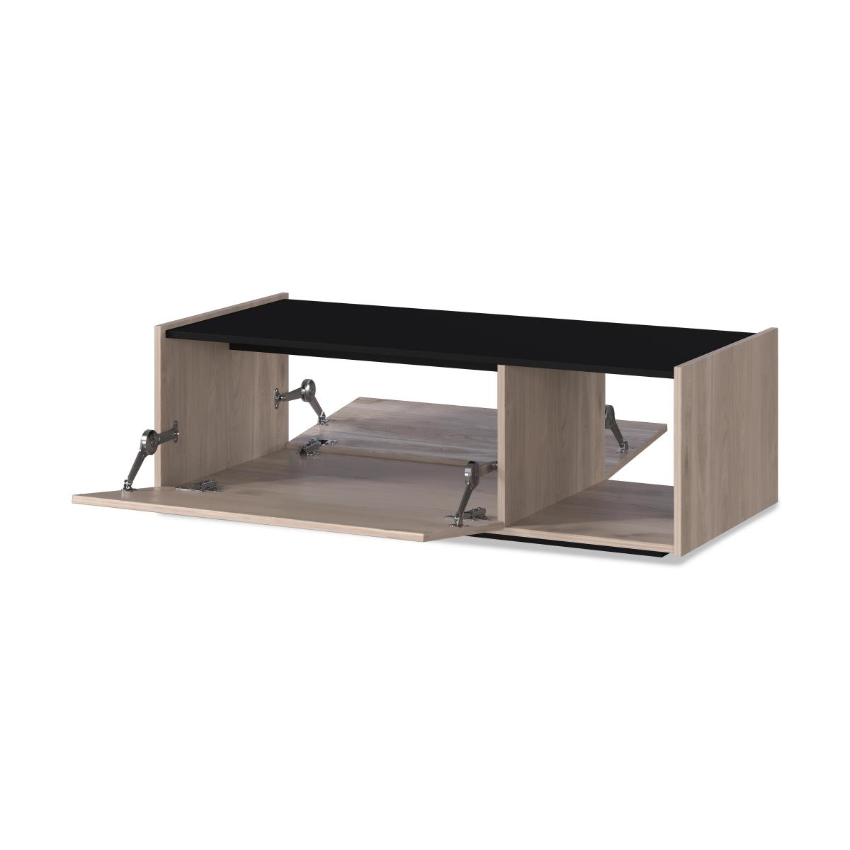 Our contemporary Cantoria range cleverly combines modern storage with a warm and understated oak-effect finish that’s always on-trend. Designed and made in Germany, this high-quality collection of living room and dining storage pieces incorporates roomy shelf, drawer and cupboard space. You’ll also appreciate the stylish high-end design features like silent soft-closing doors and drawers, recessed tops and a sleek handleless silhouette. Pieces are made from durable melamine with shock-resistant edges, ensuring that the Cantoria storage range is built to withstand the rigours of family life – and stay looking good. Made in Germany, this clever coffee table gives you plenty of extra storage space behind its two drop-down doors. The smooth oak-effect finish is stylish yet durable. Why you'll love it Spacious storage coffee table is the perfect mix of style and function. Contemporary style with all the warmth of woodgrain. Beautiful oak-effect frame with sleek handleless profile. Recessed top finished in black. The large storage compartment is accessed by soft-close pull-down doors. Durable melamine finish with shock-resistant edges. Comes in eco-friendly Styrofoam-free packaging. Made in Germany. A Furniture Village online exclusive. This coffee table is part of our Cantoria range. What you need to know Easy self-assembly required, full instructions included. Finished with a durable melamine resin coating.