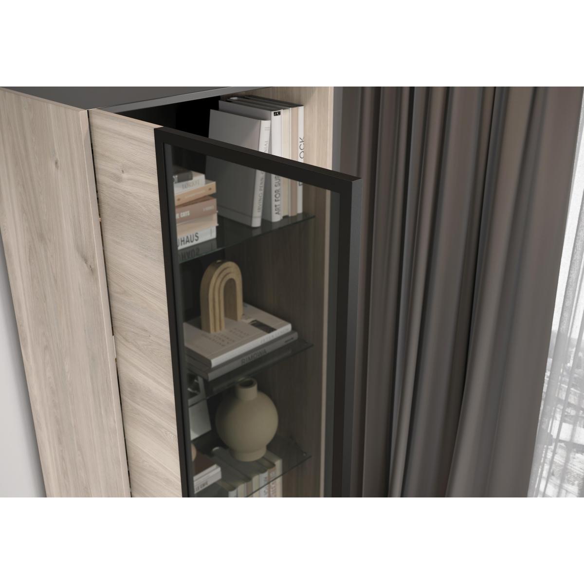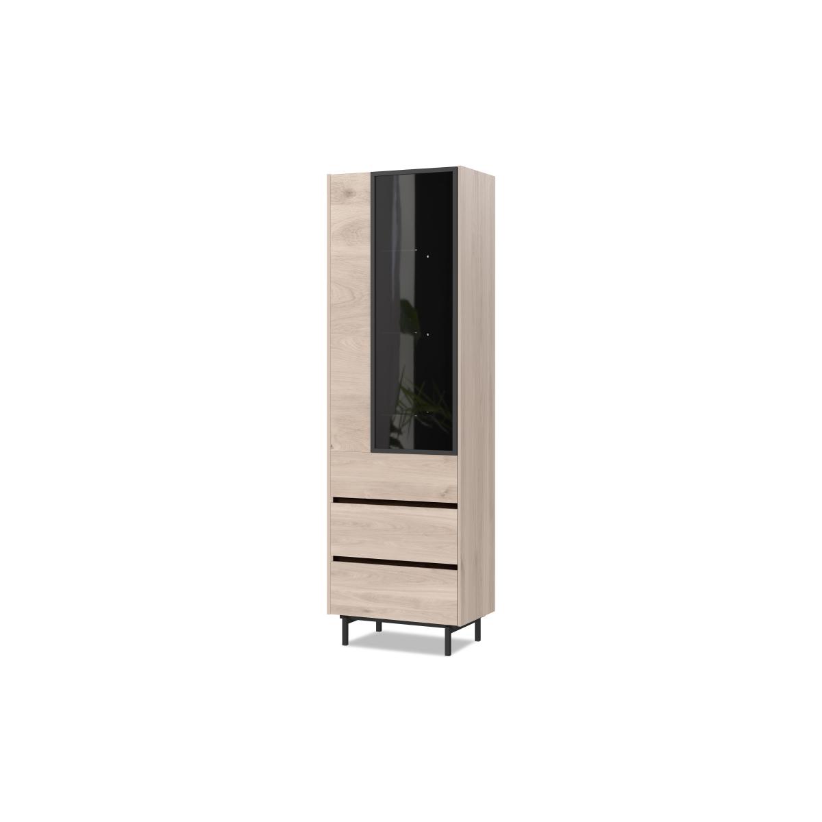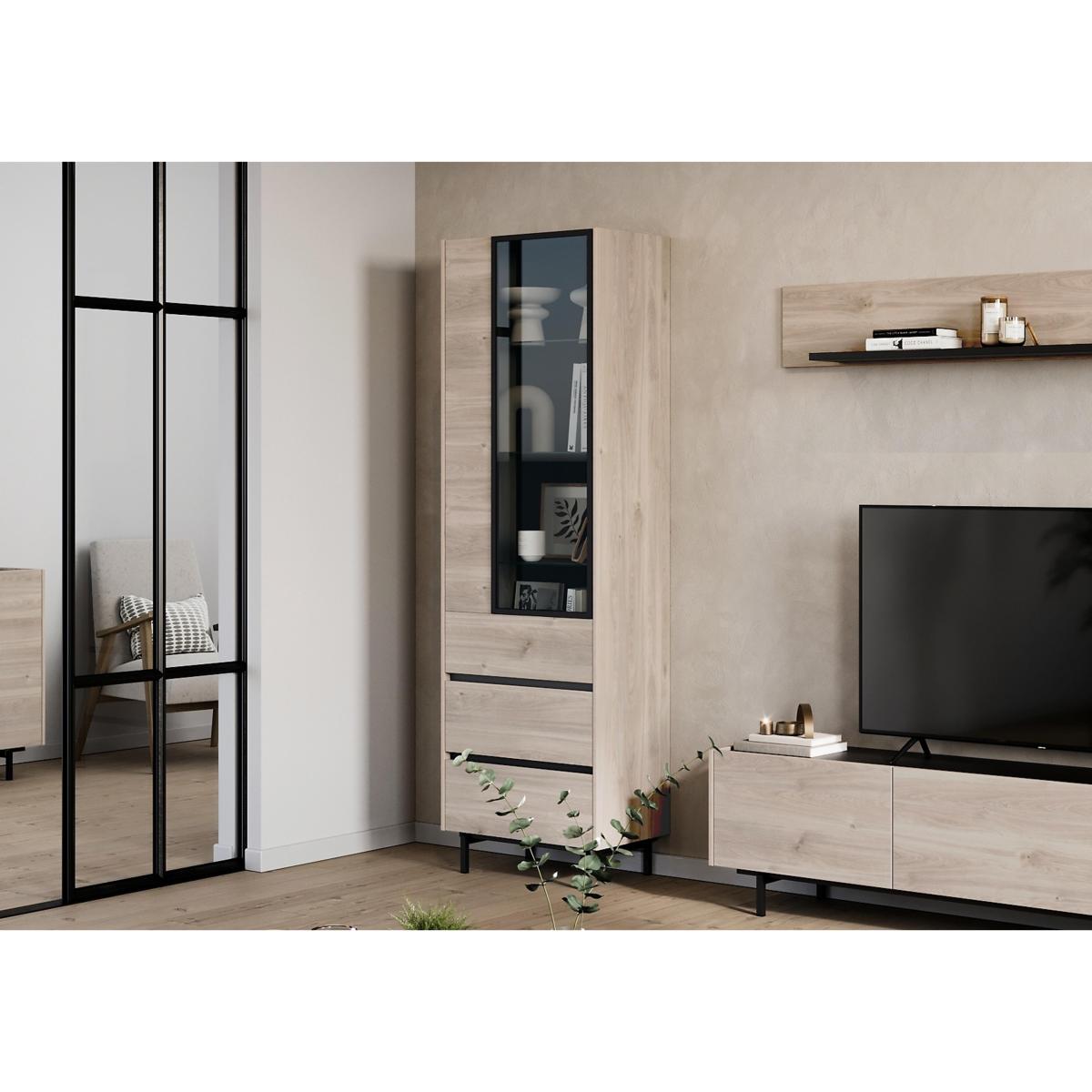Our contemporary Cantoria range cleverly combines modern storage with a warm and understated oak-effect finish that’s always on-trend. Designed and made in Germany, this high-quality collection of living room and dining storage pieces incorporates roomy shelf, drawer and cupboard space. You’ll also appreciate the stylish high-end design features like silent soft-closing doors and drawers, recessed tops and a sleek handleless silhouette. Pieces are made from durable melamine with shock-resistant edges, ensuring that the Cantoria storage range is built to withstand the rigours of family life – and stay looking good. Tall and slim, this display cabinet has a stylish – and very durable – oak effect-finish. The smoked glass door really shows off your favourite pieces. Why you'll love it Display cabinet with glass shelves makes everything look more stylish. Contemporary style with all the warmth of woodgrain. Beautiful oak-effect frame with sleek handleless profile. Recessed top and interior finished in black. Cupboard door has a stylish smoked glass insert. Drawers and cupboard door are soft closing. Durable melamine finish with shock-resistant edges. Comes in eco-friendly Styrofoam-free packaging. Made in Germany. A Furniture Village online exclusive. This display cabinet is part of our Cantoria range. What you need to know Easy self-assembly required, full instructions included. 3 glass shelves. Finished with a durable melamine resin coating. WARNING!Furniture can tip over unexpectedly and cause injury. This item must be fixed to a wall using the anti-tip kit provided. Be sure to use the correct wall fixings suitable for the walls in your home. Furniture Village is not able to fix anti-tip devices for you. Seek professional advice if you are unsure.
