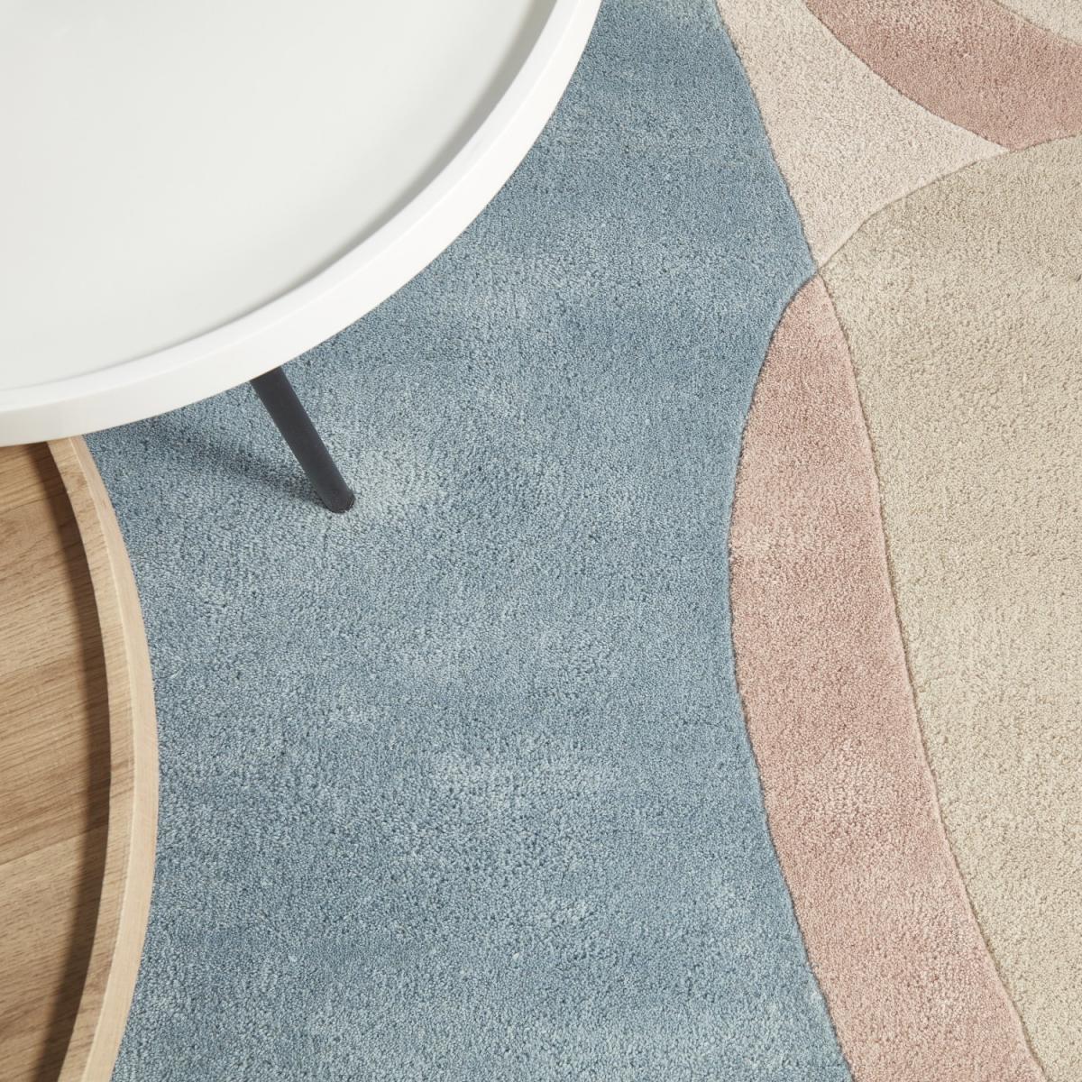 I love this one for its soft pastel palette and abstract pattern, making it a versatile piece that can add subtle colour and texture to a range of interiors. It works particularly well in contemporary or minimalist spaces where it can serve as a gentle focal point without overwhelming the room. To style it effectively, pair it with neutral furniture to let the rug’s design stand out, or coordinate with other pastel accents for a cohesive look. Its size makes it ideal for living rooms or bedrooms, anchoring seating arrangements or bed spaces beautifully. For a modern, fresh vibe, layer it over natural fibre flooring like wood or sisal, and keep accessories simple to maintain a balanced, stylish feel.
