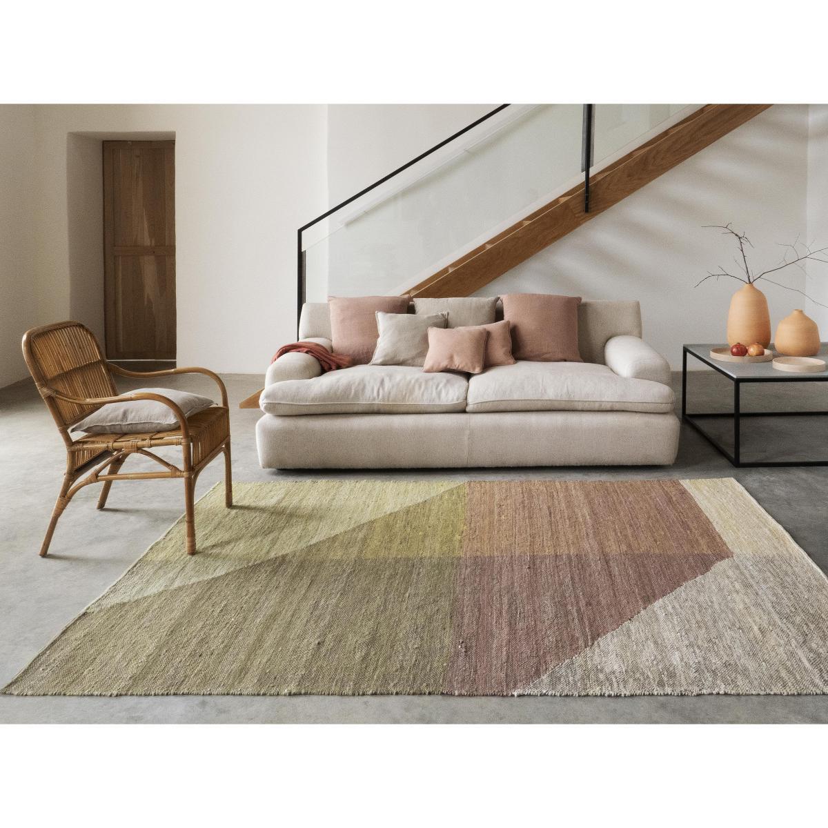 Colourful shadows. The German designer, Mathias Hahn wanted to imitate the effect of shadows on the ground on the Capas rugs. His starting point is that shadows are never black or grey, rather they are full of colours and geometric shapes. The aim of the designer was to therefore create a rug with a casual yet complex style via the use of colours and depth effects. This manifests itself in a rhythmic and dynamic composition with geometric shapes and unstructured contours. Shadow effects are created between the different parts of the rug, with lighter blocks of colour which appear to almost rise up above the others, creating a three-dimensional impression. This collection is the result of a complex manual technical process to achieve the density and fluidity of the desired effect. To be able to make the Capas rugs, Mathias Hahn and Nanimarquina studied the technical features of Kilim weaving in depth looking for new methods to divide colours. After months of research, they developed a new kind of Kilim weaving which was able to combine the colours of the warp and weft (normally, the warp is not visible in kilim). By defining a different density to Kilim with new warp tones, they were, as such, able to get an extremely visual texture in which the colours intertwine and superimpose over one another in a fluid way. This unique texture allows for a great depth and a fascinating effect of shadow and light. Mathias Hahn, on the Capas rug weaving technique: "By loosening the fibres and by using a thicker warp, we made new colours and textures visible for increased depth and improved hues. " Colour is an essential element of the Capas collection. Each rug has a main colour, a complementary tone and its darker hue, which, in the composition give the illusion of a shadow on the ground. These master colours are in harmony with transition shades which create this wonderful fading effect. Whether it was during the hours spent by the creators refining their works to express the current vision, or in the craftspeople's days of weaving, tirelessly updating their ancient techniques while respecting tradition, you find this search for precision which defines the quality of the Nanimarquina rugs.
