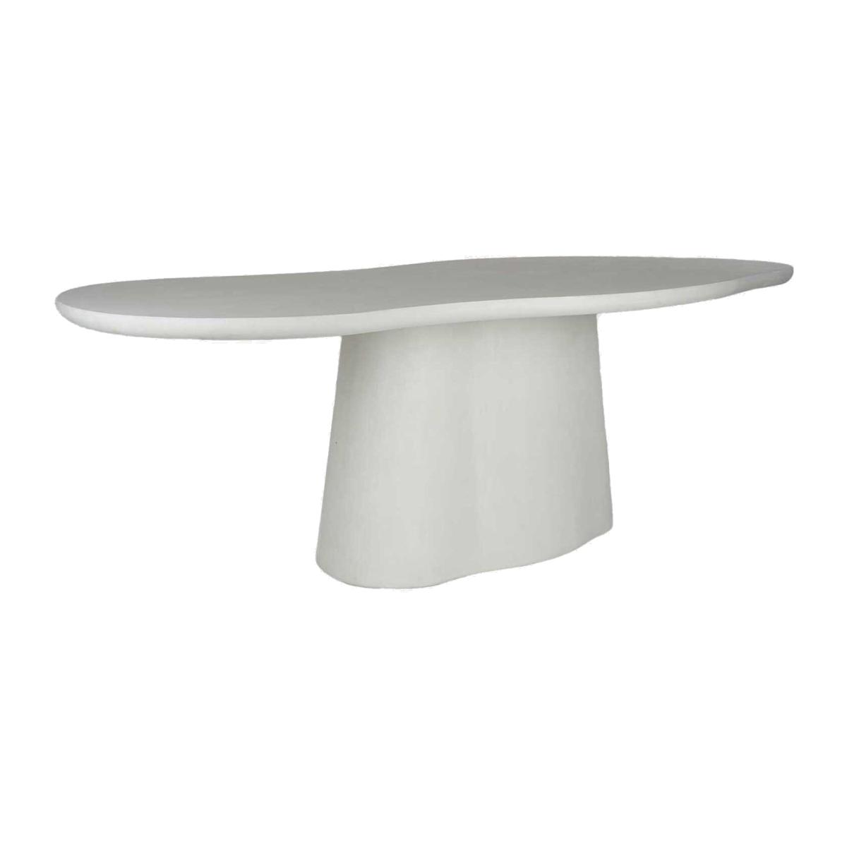 The Capella White Faux Stone Pedestal Dining Table brings sculptural beauty to any dining space. Its organically shaped tabletop features natural edging, adding a handcrafted touch to its modern design. Finished in Mortex, the surface has a soft, plaster-like feel while offering exceptional durability against water, heat, and scratches. Resting on a sturdy pedestal base, this statement piece blends effortlessly into contemporary and minimalist interiors.