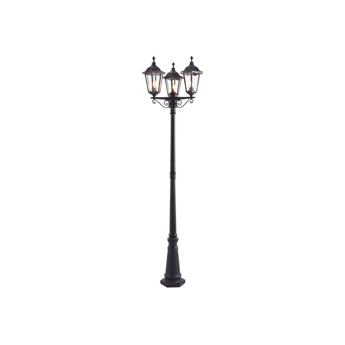 A timeless traditional exterior lamp post, matt black painted die cast aluminium with clear glass panels and decorative details. Combine with a filament LED lamps to create an authentic look of the past. Colour: Black. Lamp Holder Type: E27. Bulb Type: GLS. Maximum Bulb Wattage: 60. Bulb Included: No. Number of Bulbs: 3.