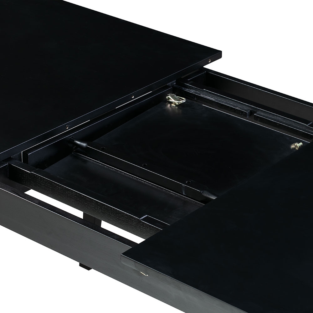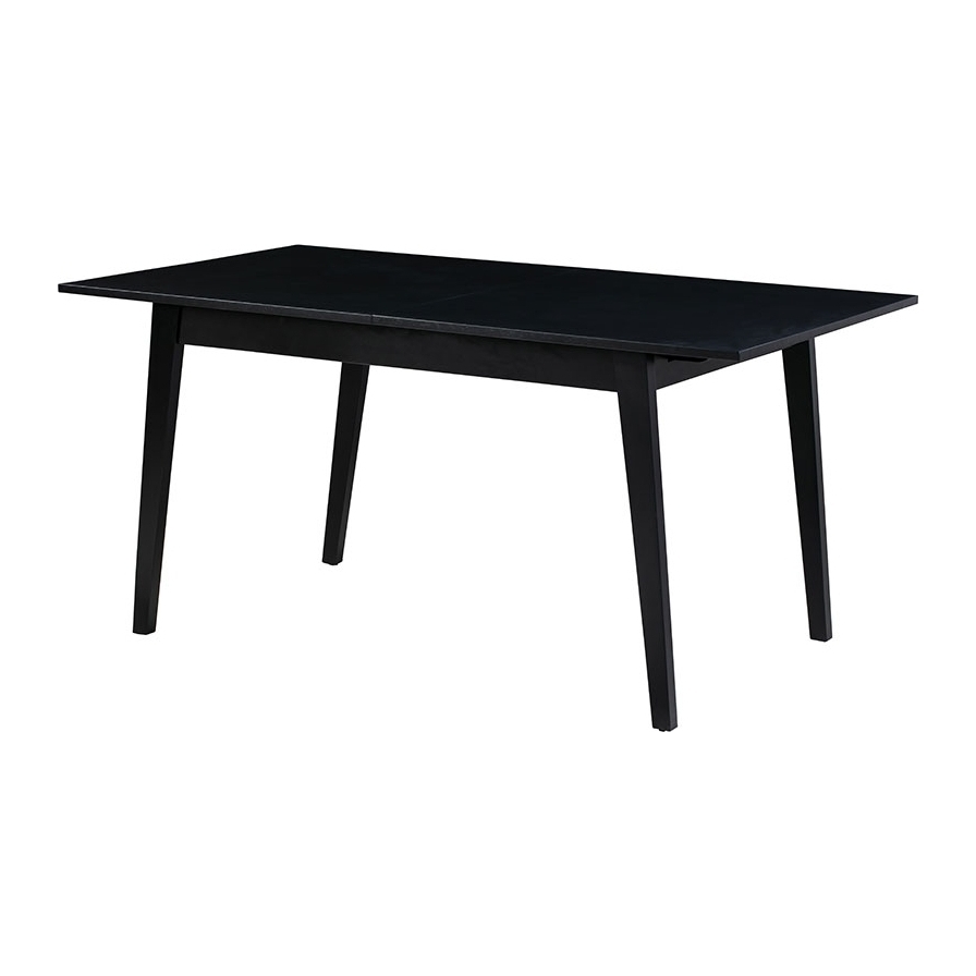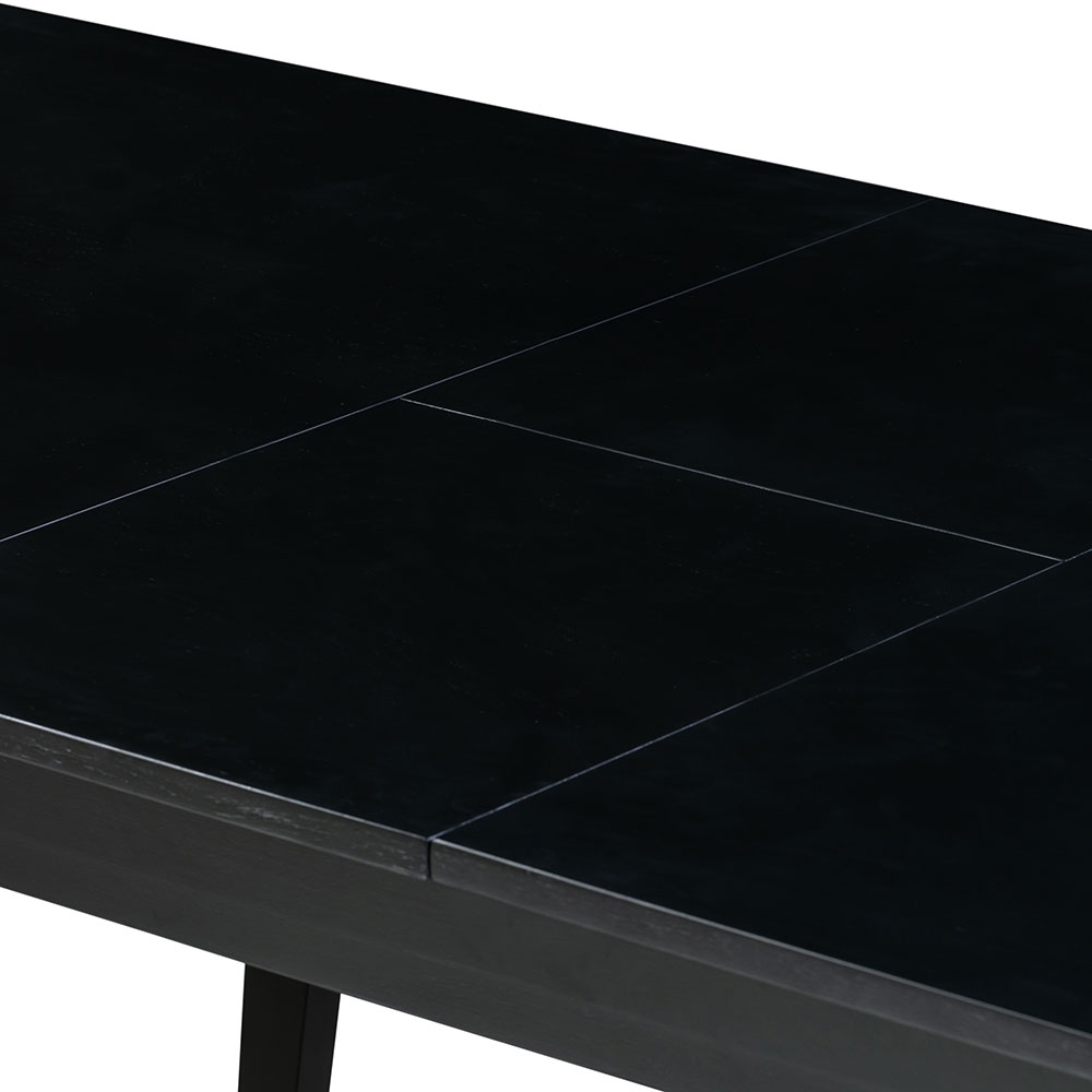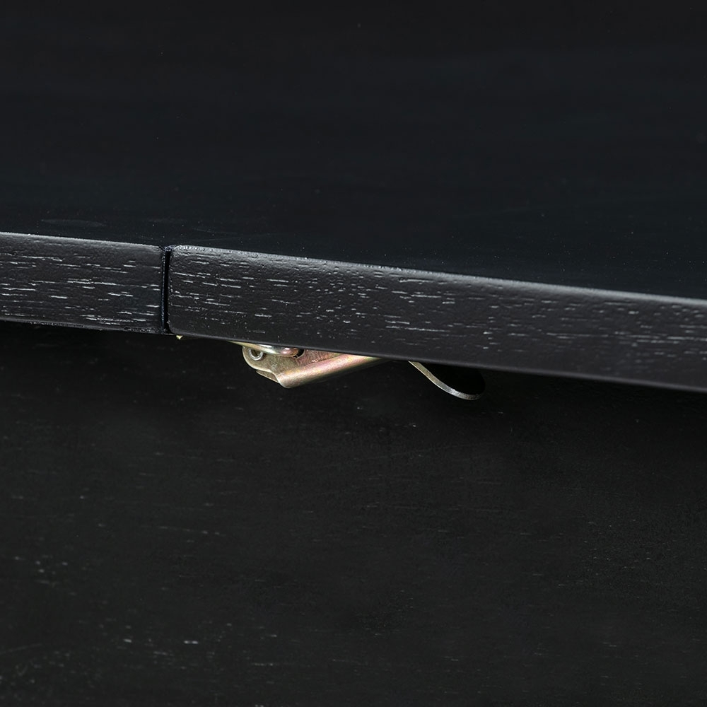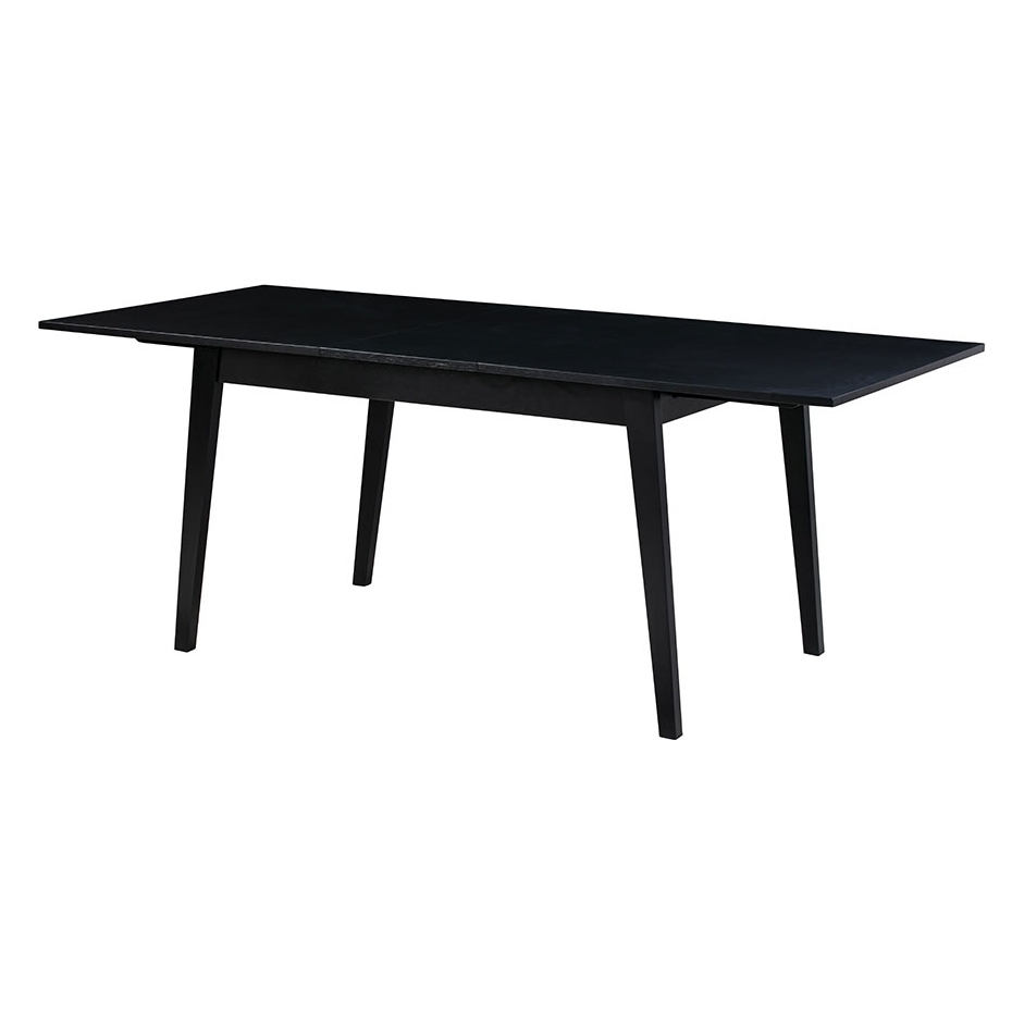 A convenient, extending dining table which will seat up to six people Extension leaf stores neatly inside and folds out when required Solid ash base Ash veneer top Matt black lacquer finish Simple assembly required