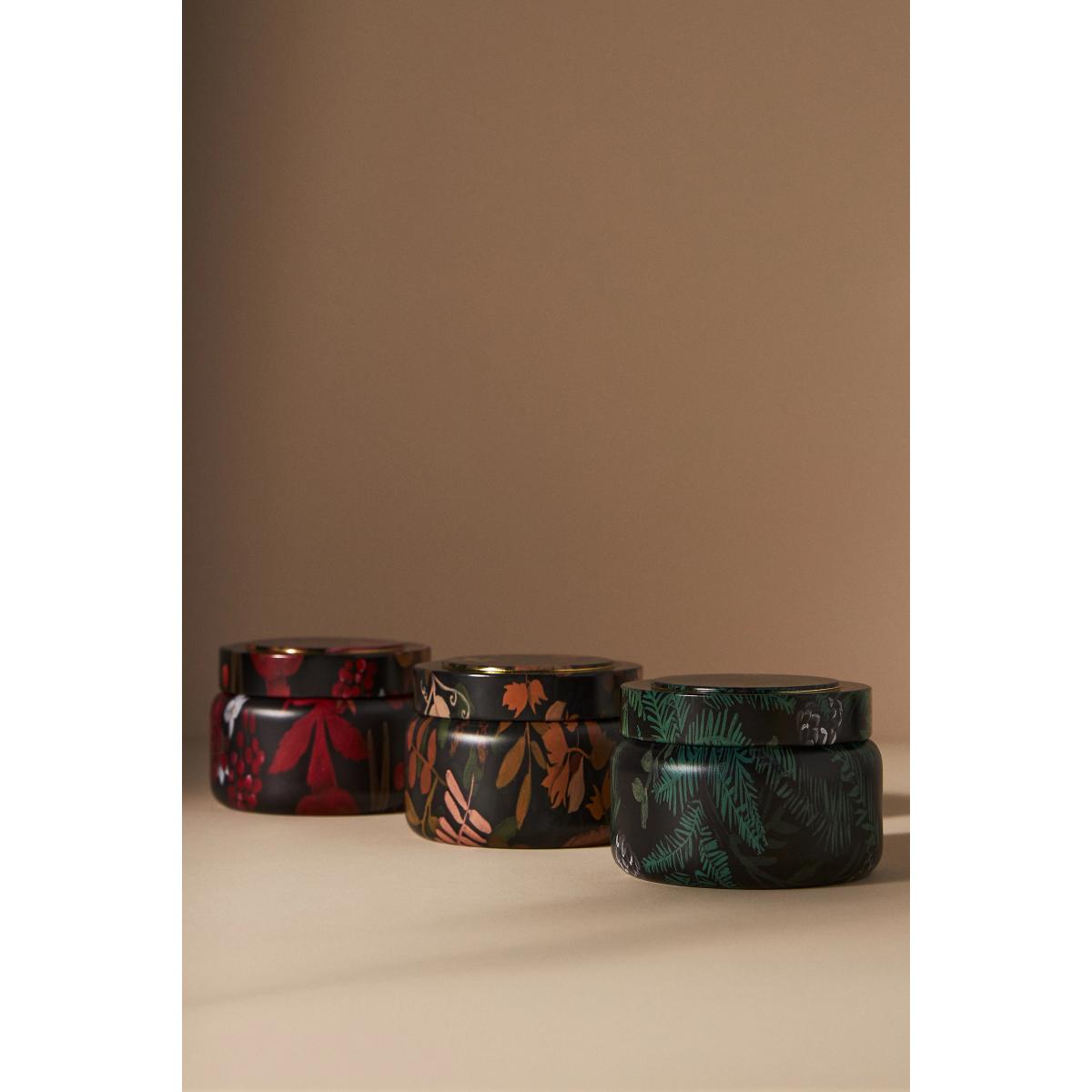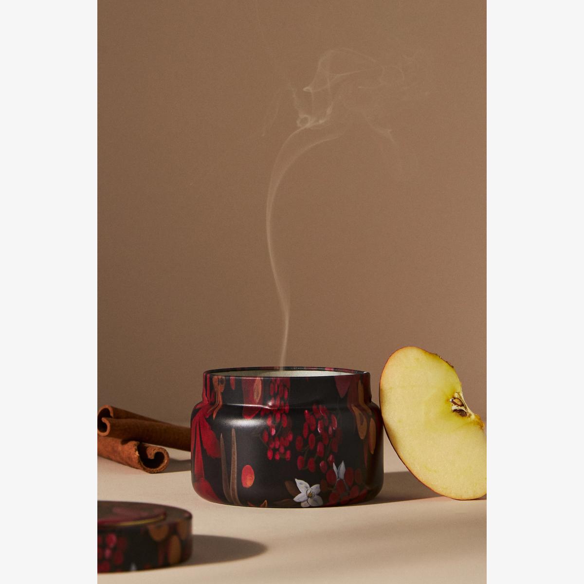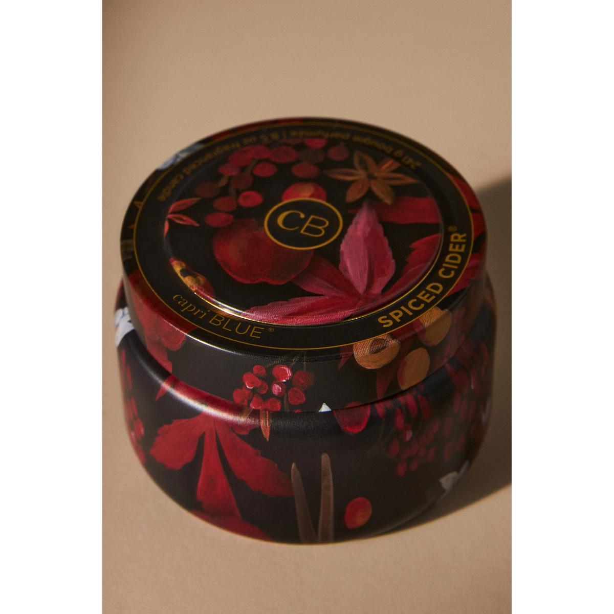 Spiced Cider (Spice Fruity): Sparkling berries and grapes mix with harvest apple and cinnamon within a soothing vanilla and Canadian fir base. For the best burn experience, keep the following in mind: The first time you light your candle, allow it to burn until the wax pool melts all the way to the edge; for a larger candle, this may take several hours. Wax has " memory," so if it is extinguished with a partial pool, that will prevent a full, even pool from forming in the future. Trim your wick each time you light the candle, removing any " bloom" from the previous burn. We recommend lighting a wick that is 1/4-1/2" in length. Ensure that your candle is placed on a heat-safe surface. Do not allow wick trimmings, dust, or other materials to accumulate in the wax pool. To ensure safety and longevity, be sure to check the bottom of your candle for additional instructions, including details on when to discontinue use. Spiced Cider Tin Candle by Capri Blue in Red Size: Medium at Anthropologie