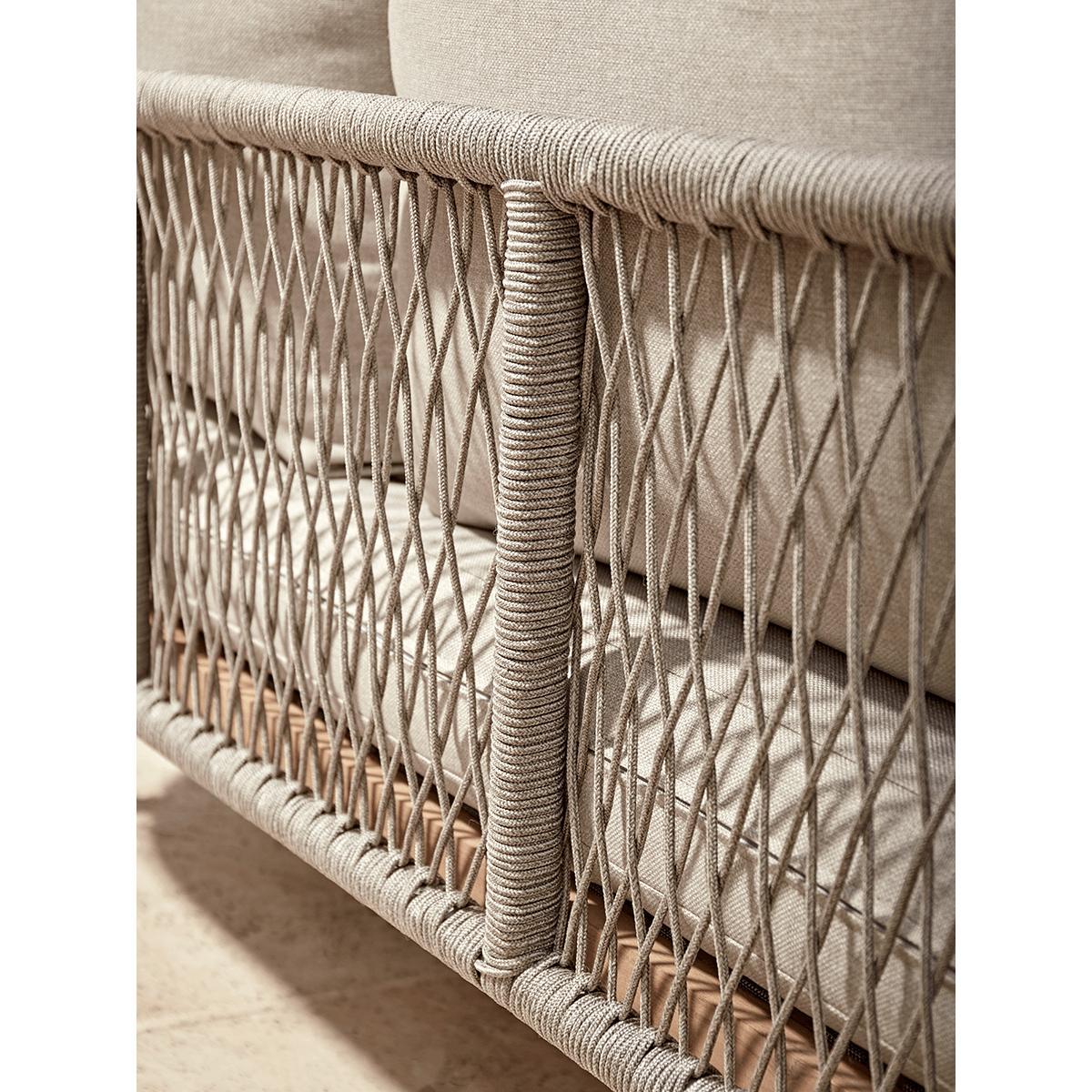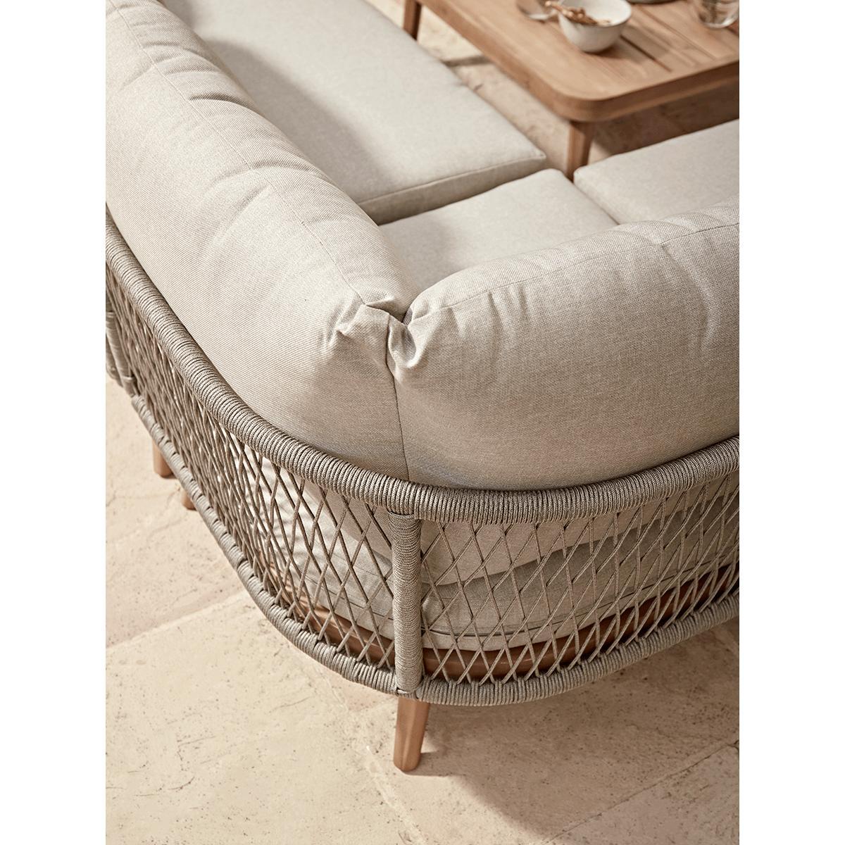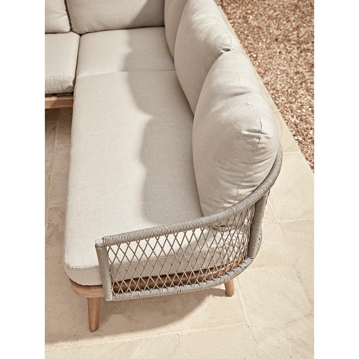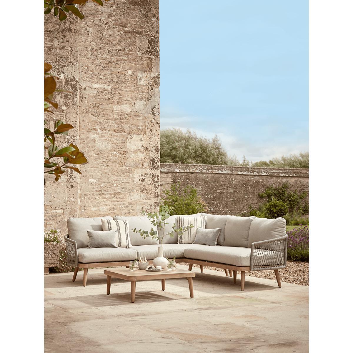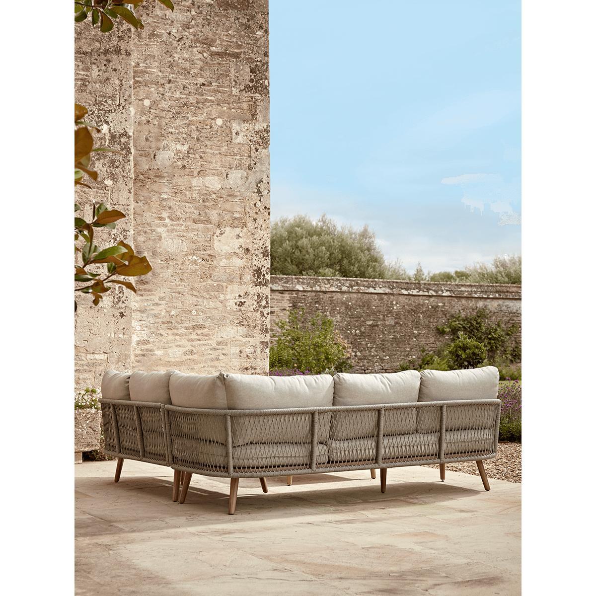 I love the Capri corner for its clean lines, subtle rope-weave detailing and pale, weather-resistant cushions that suit everything from coastal terraces to contemporary courtyards. Its low-profile frame works brilliantly against slate or porcelain paving and folds effortlessly into a neutral, plant-rich scheme. For practical styling, layer in scatter cushions in linen or boucle and drape a soft, outdoor throw over one arm. Position a rattan coffee table in the centre and use lanterns and planters of varying heights to add interest. Keep the palette natural to let the sofa’s gentle tones shine.