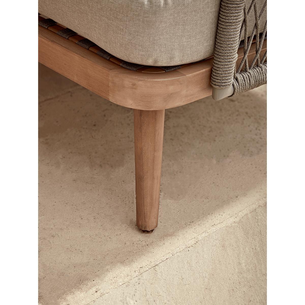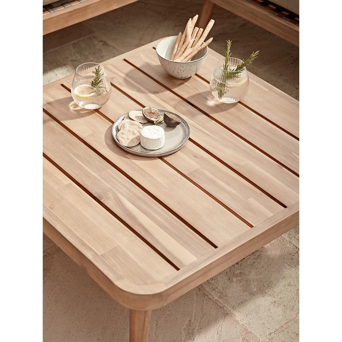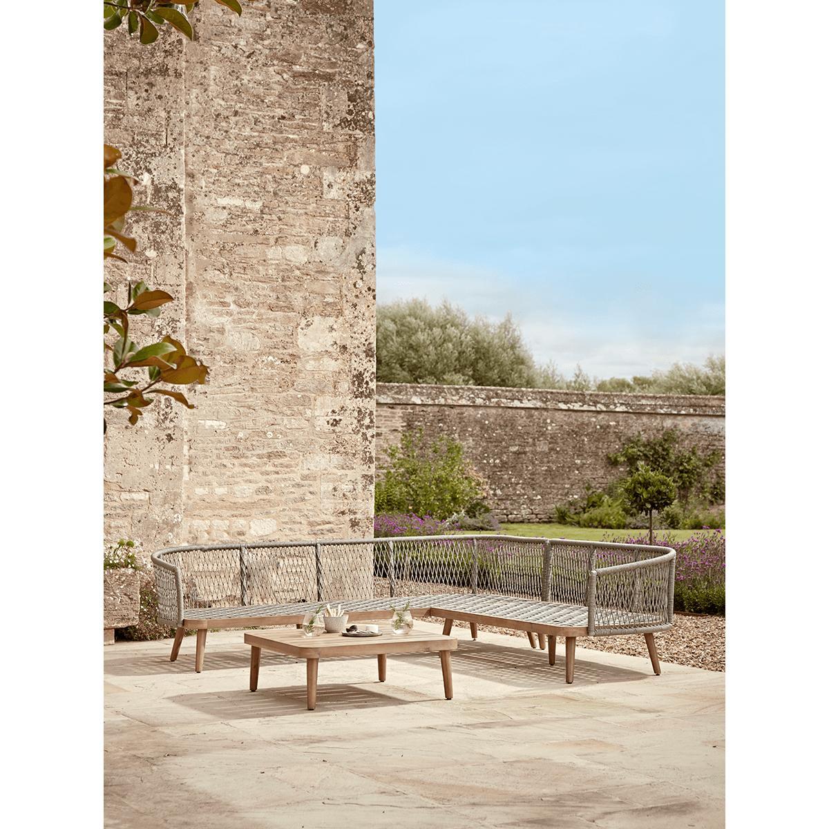 Beautifully contemporary, but still sumptuously comfortable, our Capri Corner Set is the perfect place to host friends and family, with its L-shaped sofa and low table. The sofa has a curved design, with a woven rope style back in soft grey, perched atop a washed acacia wood base. The table is simply made from acacia, with ample capacity for snacks and drinks.