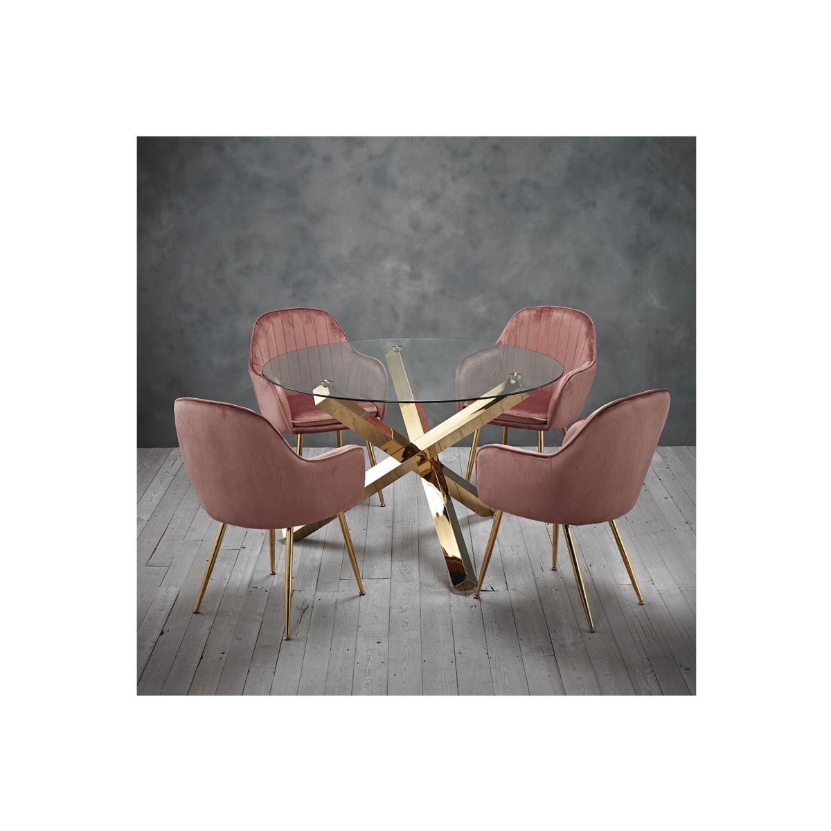 Capri Glass Top Dining Table + 4 Pink Velvet Dining Chairs with Gold Legs