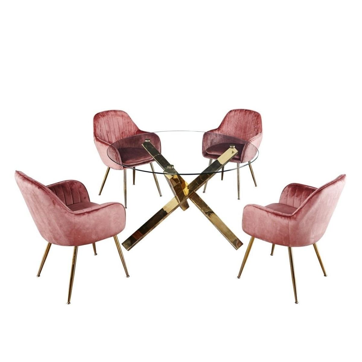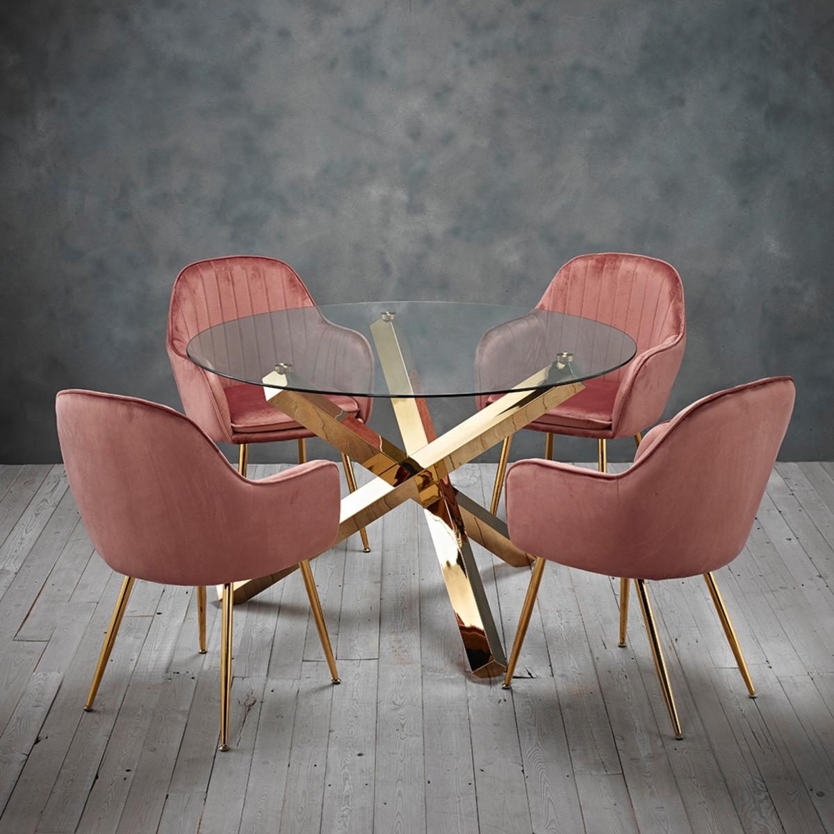Capri Gold Dining Set with 4 Pink Velvet Dining Chairs