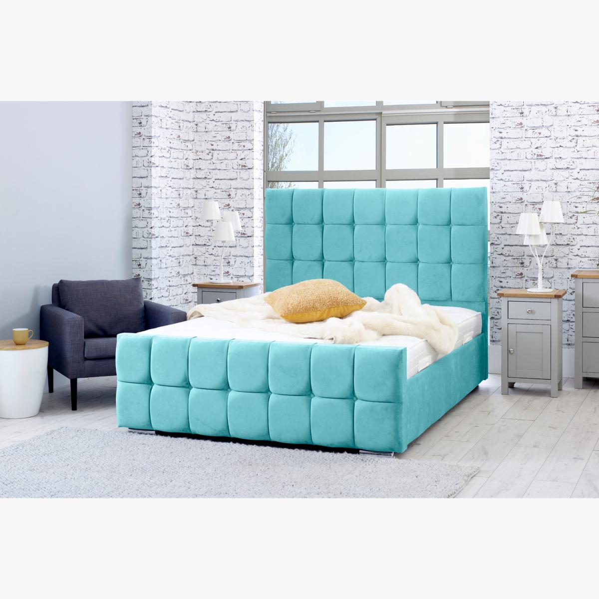 The opulent upholstered Capri bed frame in silver naple will make an exceptional additional and a stunning focal point in any sleeping area. Featuring a headboard and footboard in a detailing Capri design, this bed is a unique, contemporary piece that will transform your bedroom. The solid board base, 4-inch solid thick frame, and chrome feet ensure maximum support, and the posture spring slatted solid base makes for perfect nighttime comfort. It is compact and you can choose the best size that will fit perfectly into your bedroom. If silver is not your thing, you can choose from the different available fabric colors. The mattress and other accessories in the image are not included in the bed frame package.