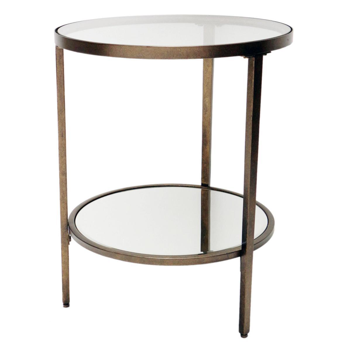 Dunelm Exclusive - Designed and Developed by Dunelm. Featuring glass tops with mirrored accents, the Caprice range will add a touch of elegance to any room. Complete with one tempered glass top shelf and one mirrored shelf, this self-assembly side table is crafted with iron legs for durability, decorated with a brass finish.