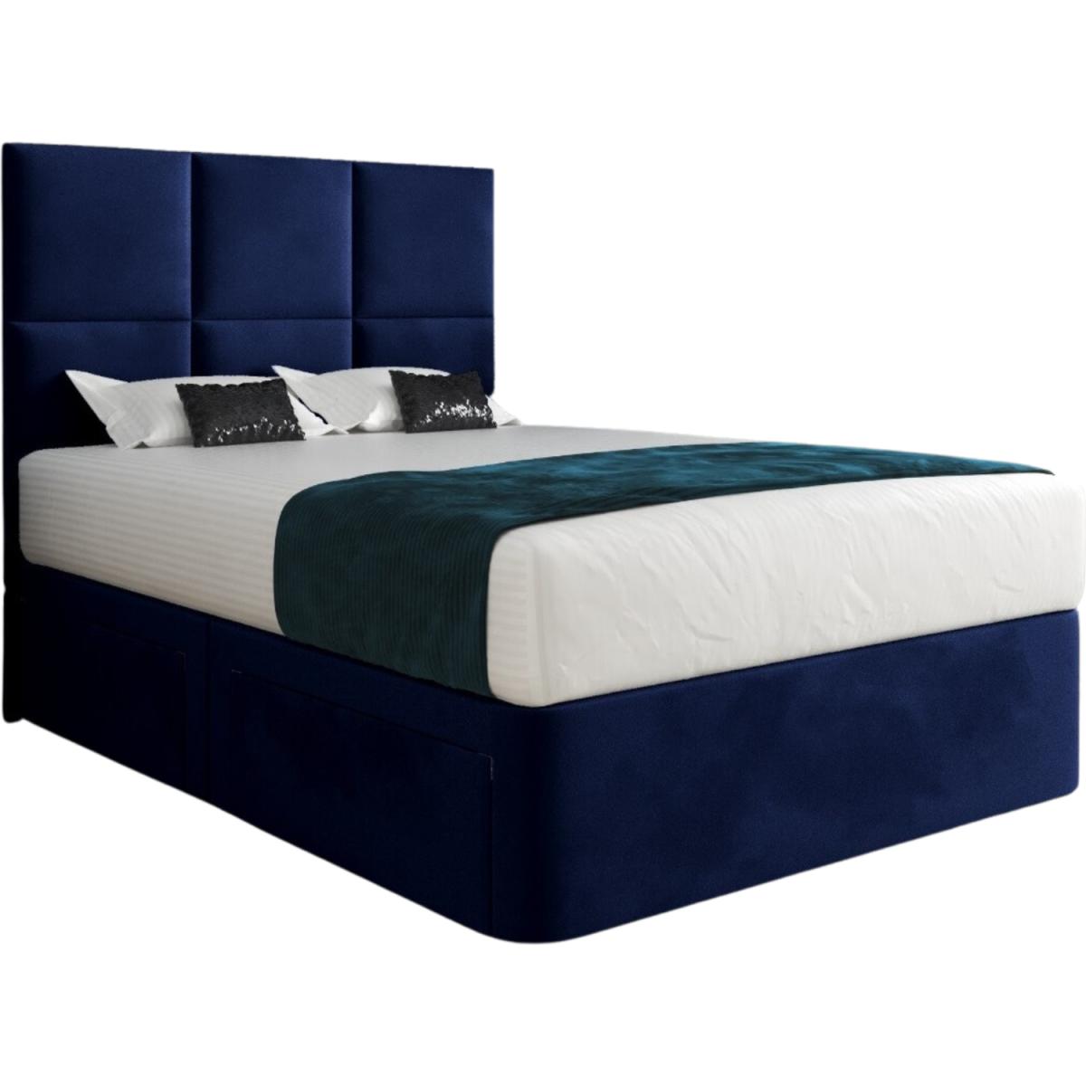Caprio Upholserted Floorstanding Headboard With Divan Bed Frame - Blue / Small Double