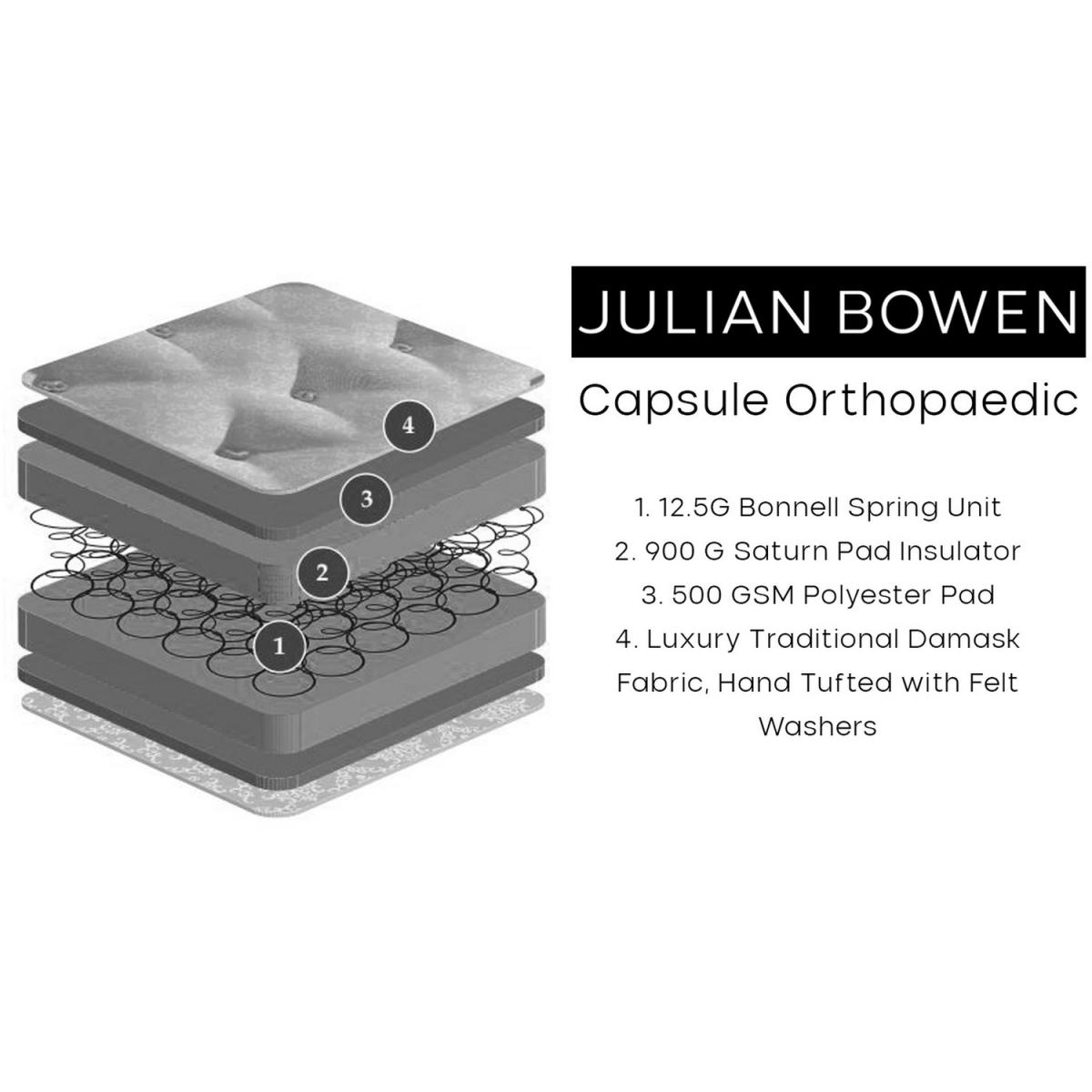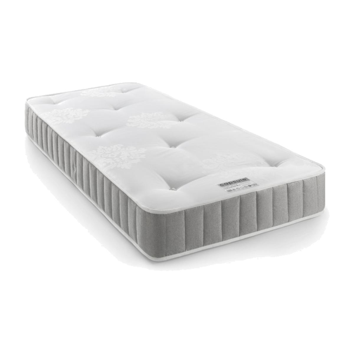 The Capsule Orthopaedic Mattress offers a 12.5 gauge bonnell spring unit, with a 900gsm spring insulator pad and 500gsm polyester pad filling to help you get the best night's sleep. Finished in a soft touch Damask fabric with a feature contrast quilted border and hand tufted with felt washers, this mattress provides the best orthopaedic comfort level you need for a great night's sleep. Available in 90cm, 135cm and 150cm sizes, this mattress is part of the Capsule Mattress Collection.