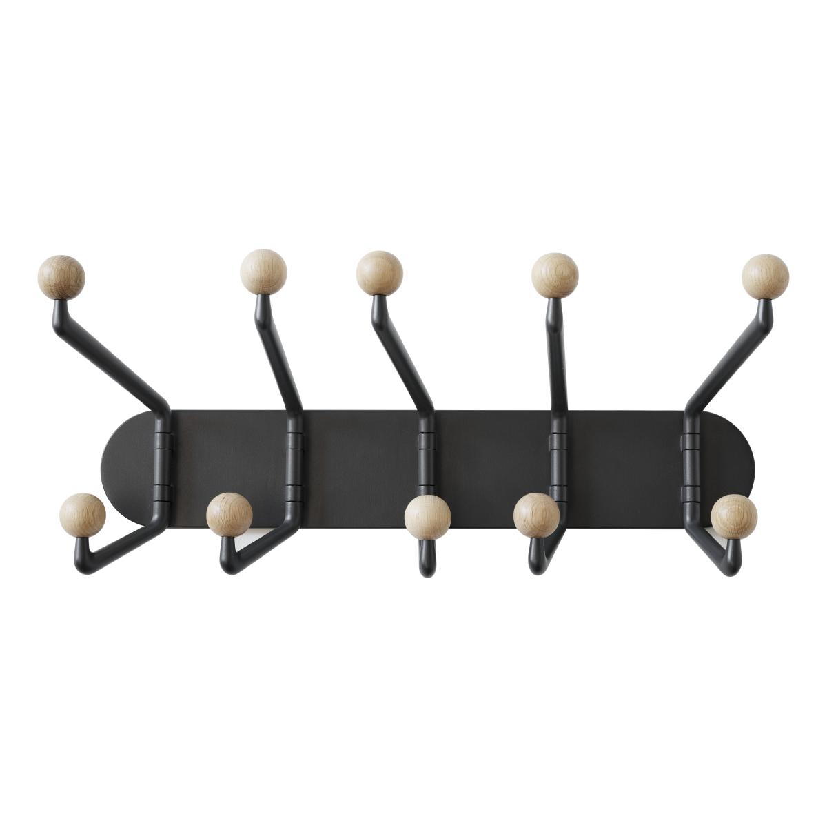 A sculptural approach to a traditional piece of furniture. This wall-mounted coat rack in graphite grey aluminium is adorned with solid oak balls. Inspired by the appearance of the branches of a tree, Capture has a fluid silhouette and is very sturdy. The ten pivoting tree-like arms of different depths ensure maximum functionality. This coat rack will be perfect in an entrance hall for hanging coats and bags, in a bathroom or kitchen for hanging towels and tea towels. It’s ideal in private, contract or commercial spaces. Delivered flat (easy assembly).