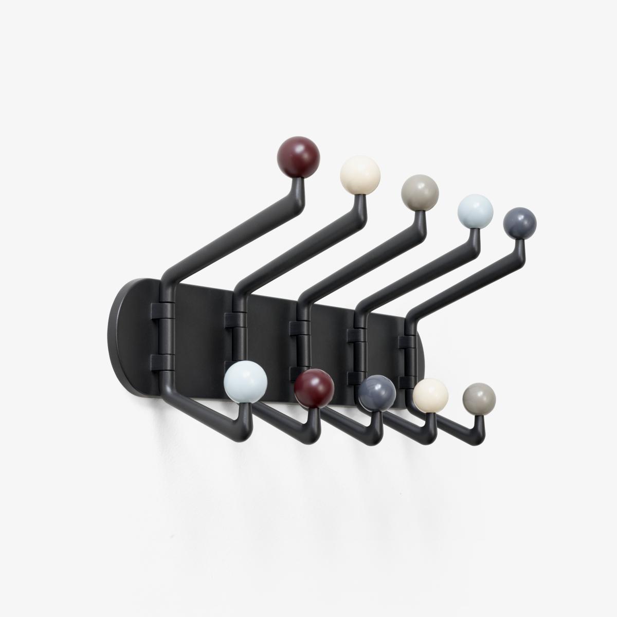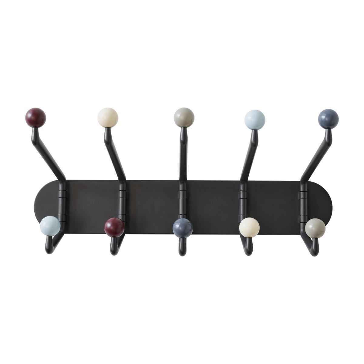 A sculptural approach to a traditional piece of furniture. This wall-mounted coat rack in graphite grey aluminium is adorned with coloured balls in lacquered solid oak. Inspired by the appearance of the branches of a tree, Capture has a fluid silhouette and is very sturdy. The ten pivoting tree-like arms of different depths ensure maximum functionality. This coat rack will be perfect in an entrance hall for hanging coats and bags, in a bathroom or kitchen for hanging towels and tea towels. It’s ideal in private, contract or commercial spaces. Delivered flat (easy assembly).