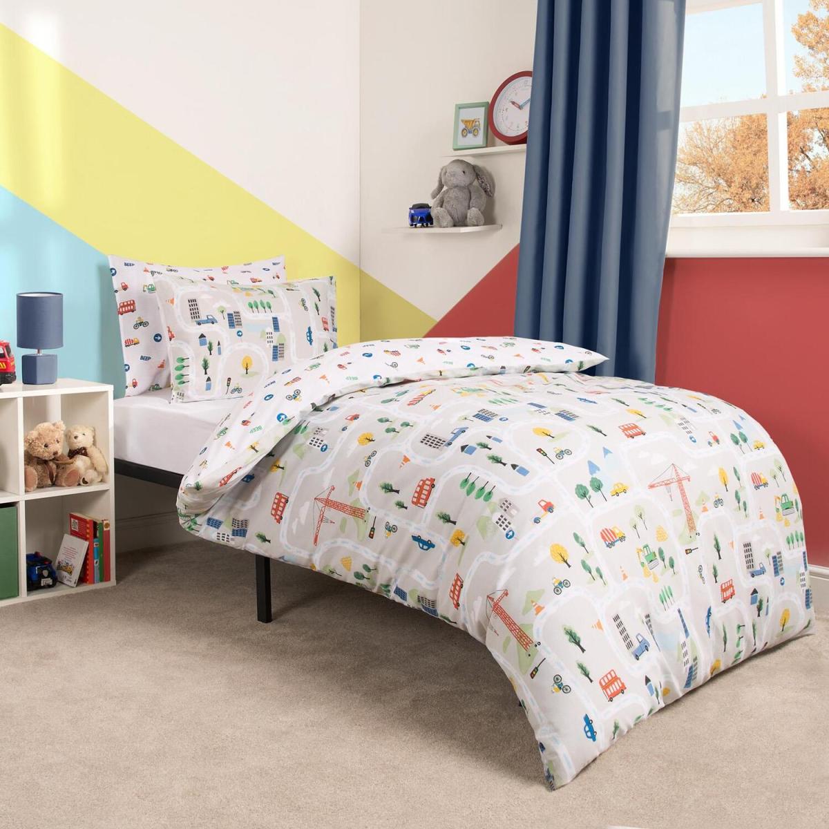 Embark on a journey of imagination with this car themed for kids. The captivating transport-themed design against a serene blue backdrop brings a sense of adventure to their space. Crafted for comfort and style, this duvet set is perfect for young explorers, creating a cosy and inspiring atmosphere where dreams of exciting journeys take flight. Transform their room into a transport wonderland with this delightful addition.