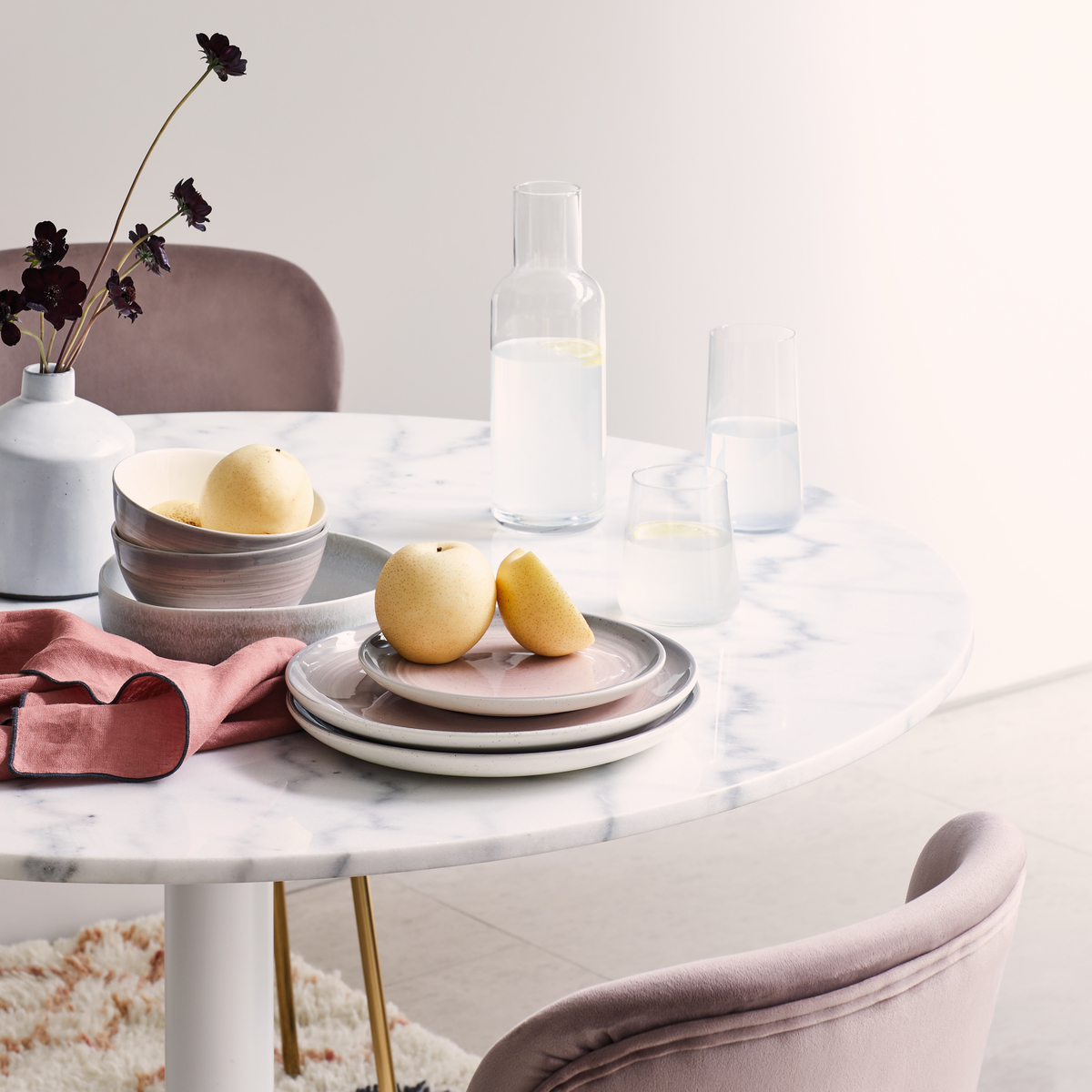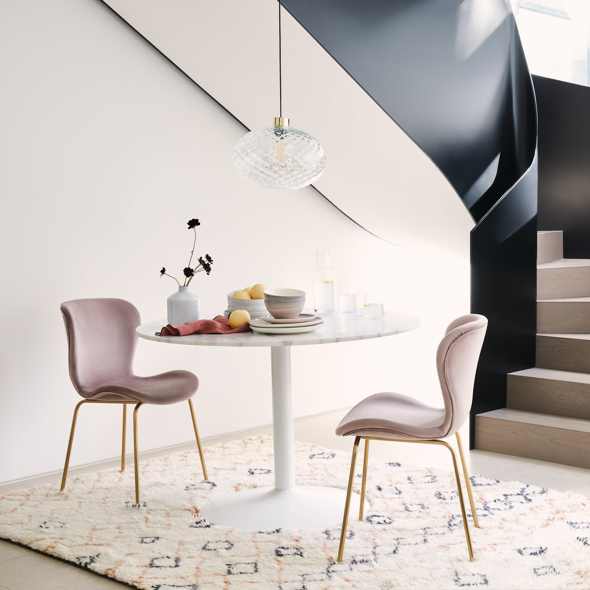 I love this round marble dining table because it effortlessly combines elegance with practicality. Its white marble top adds a timeless, luxurious touch that works well in both modern and classic interiors, from sleek urban apartments to more traditional settings. The clean, simple design makes it versatile for different styles, and it pairs beautifully with a mix of contemporary chairs or even vintage pieces for a more eclectic look. Practical styling tips include adding colourful or textured cushions to bring in warmth and personality, or layering with a statement centrepiece like a vase or candles to enhance its sophisticated appeal. Overall, it’s a stylish yet functional choice that can serve as the focal point of any dining space.