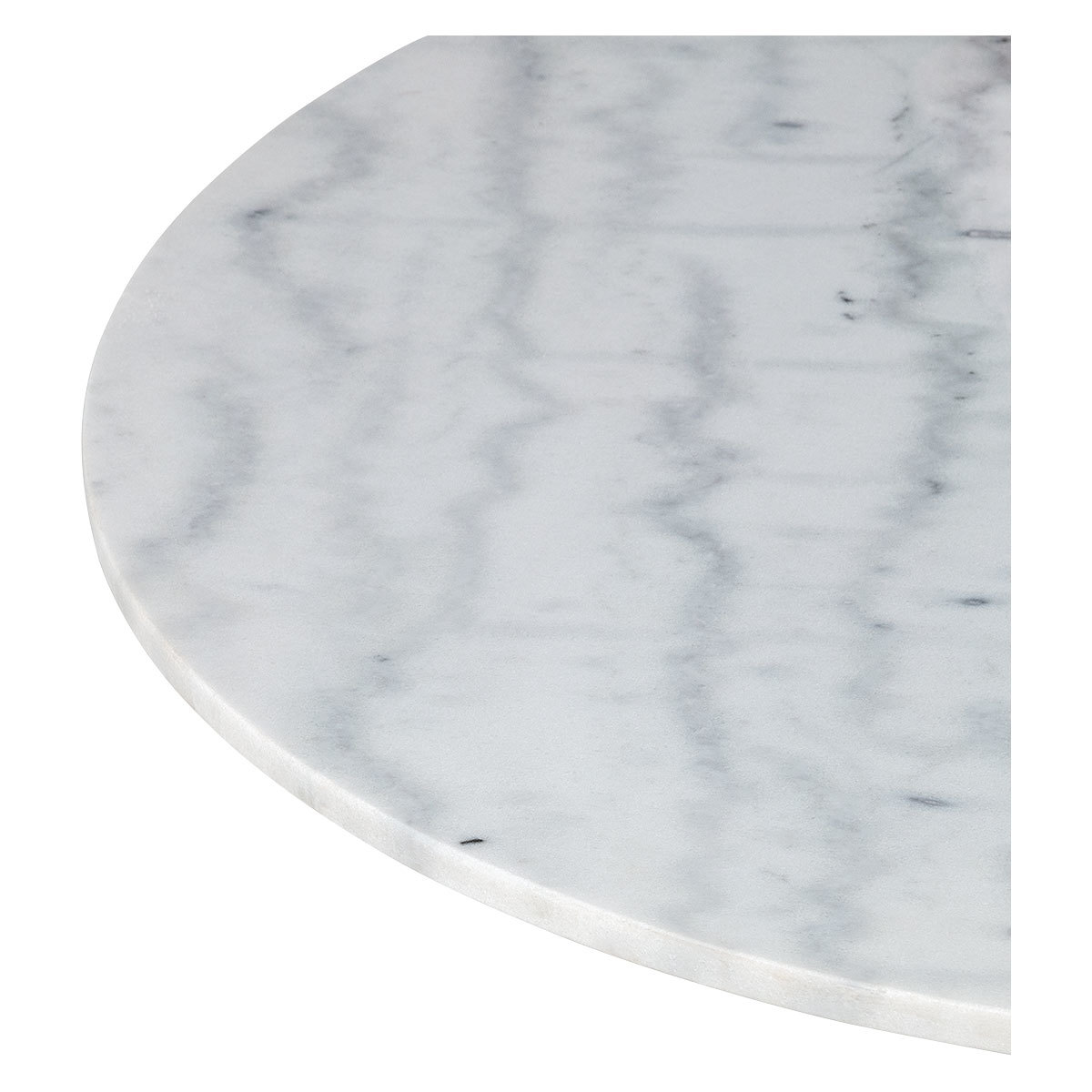 Create a stylish, modern addition to your dining scene with the Cara white round 4-seater marble dining table. A luxe design, this table’s richly variegated white and grey marble top sits on top of an elegant powder coated metal base for stability. Due to the natural properties of marble, no two pieces are alike and can vary in texture, pattern and colour. Comfortably seating 4 people, this table is perfect for everyday use.
