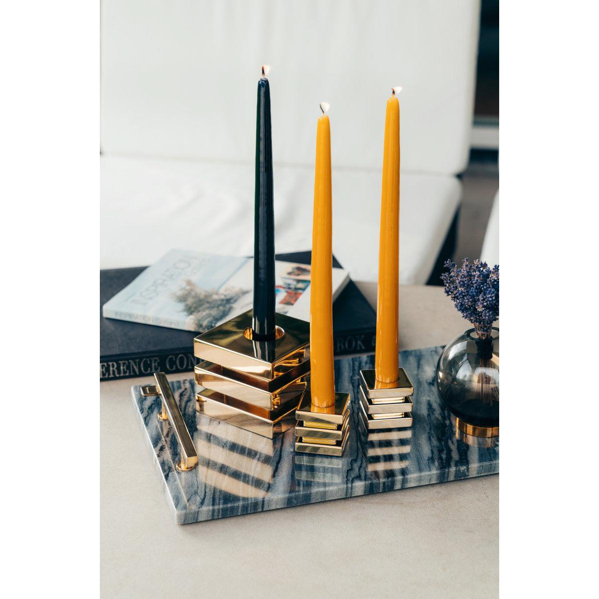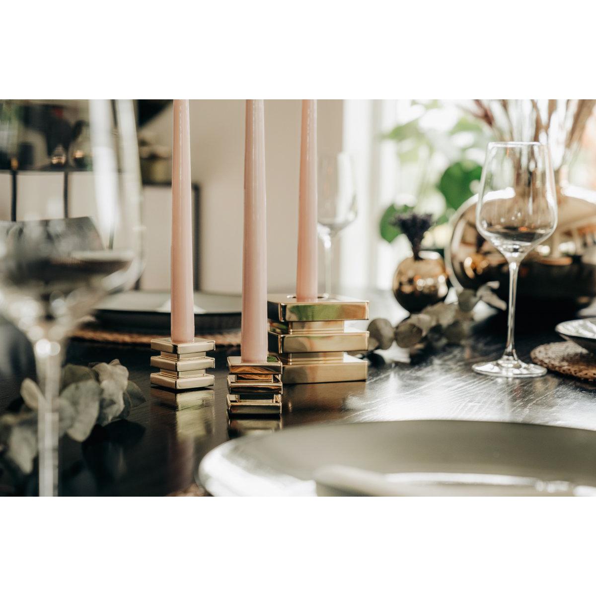 Cards a low candlestick 40 cm from Swedish Hilke Collection is designed by Åsa Ingrosso. It's a pretty handmade candlestick available in solid brass or nickel-plated brass and made up of three cubic plates. It is elegant and looks lovely on any set table or on the windowsill. Perfect for creating a warm and cosy atmosphere - a timeless candlestick that never goes out of style.