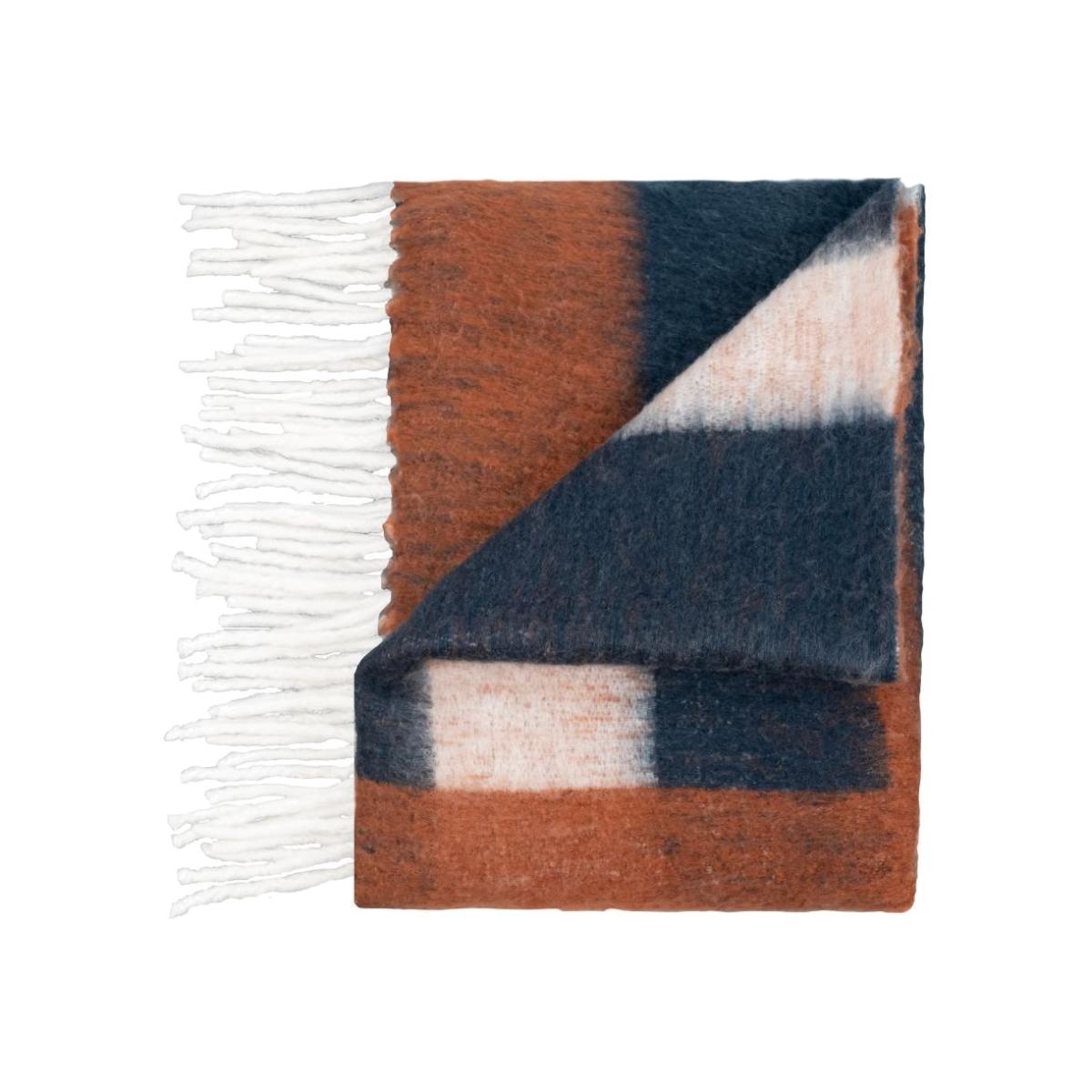 Our stylish Cara Copper Brushed Mohair Wool Throw Blanket helps you to indulge in unparalleled softness. This luxurious throw blanket envelops your bed or sofa with its tonal melange drapes, offering both texture and warmth to your space. The thick white fringe along the edges adds a touch of elegance.