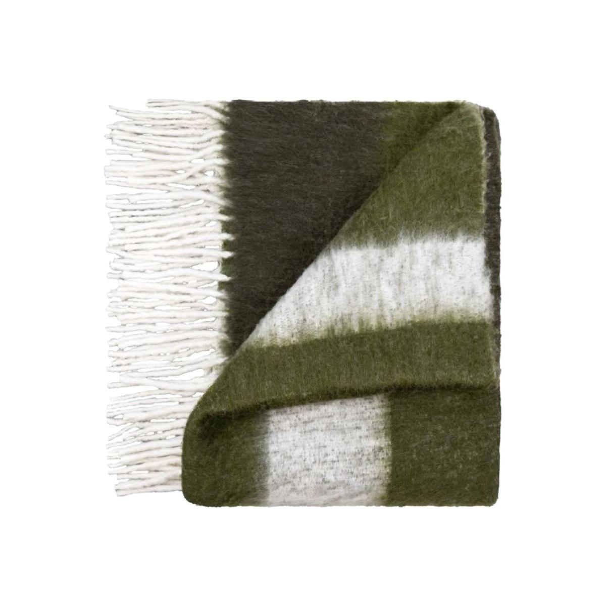 Our stylish Cara Green Brushed Mohair Wool Throw Blanket allows you to indulge in unparalleled softness. This luxurious throw blanket envelops your bed or sofa with its tonal melange drapes, offering both texture and warmth to your space. The thick white fringe along the edges adds a touch of elegance.