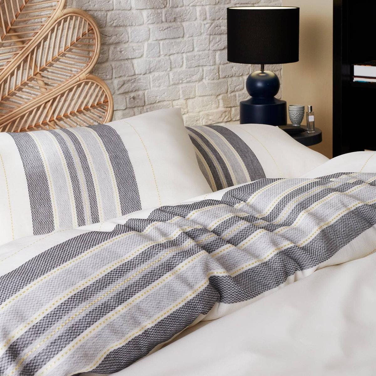 I love this set of pillowcases for its clean, contemporary look and the versatility they bring to a range of interiors. The Turkish cotton stripe design in off-white and anthracite grey offers a subtle play of texture and colour that can easily complement both neutral and bolder colour palettes. They're practical too, thanks to the quality of Turkish cotton which feels soft and durable. I’d suggest styling these pillowcases in a relaxed, layered bedding scheme - perhaps adding a cosy throw or textured cushions in complementary shades for a curated yet unpretentious feel. They work particularly well in modern, Scandi or minimalist schemes but can easily elevate a more traditional space when paired with other textured fabrics.