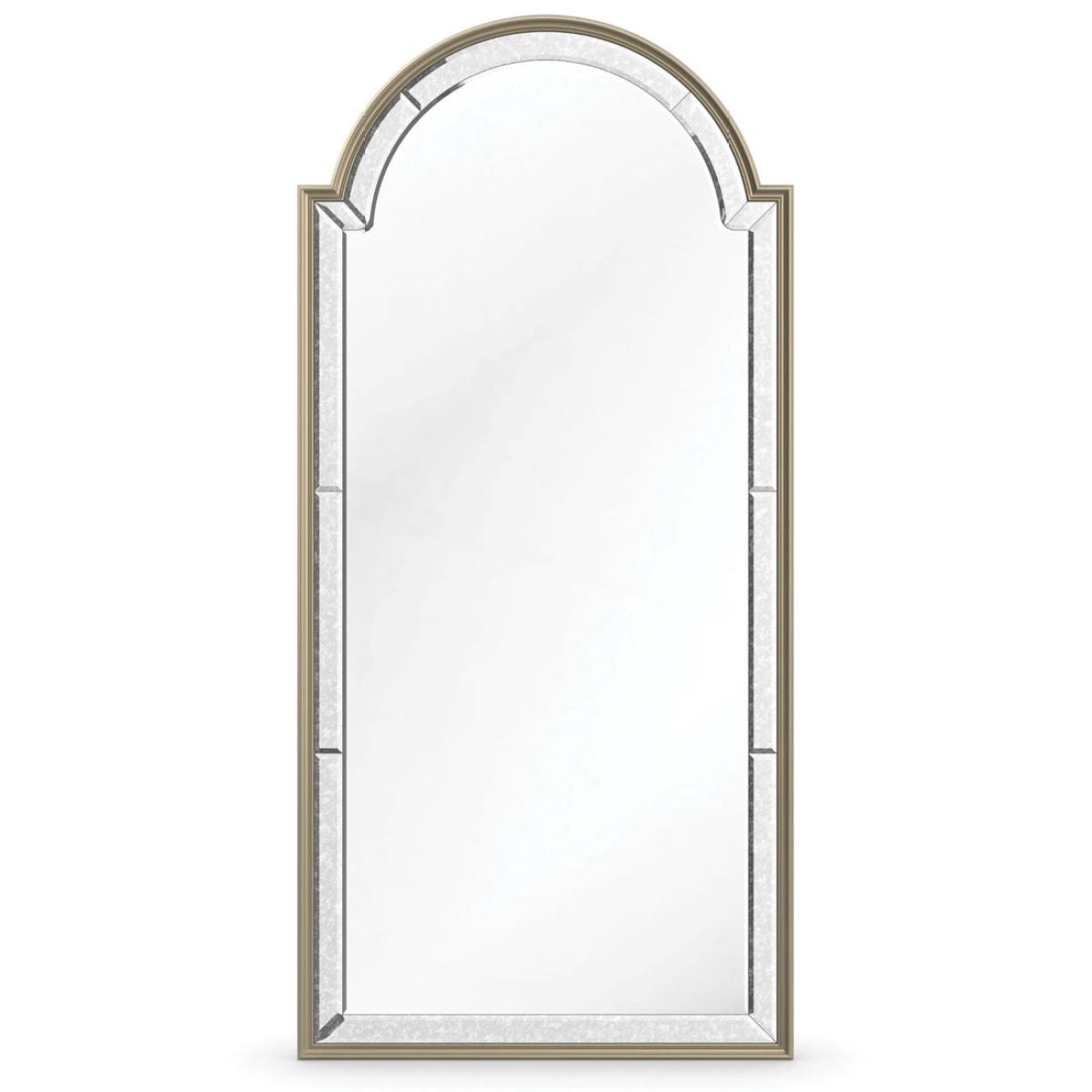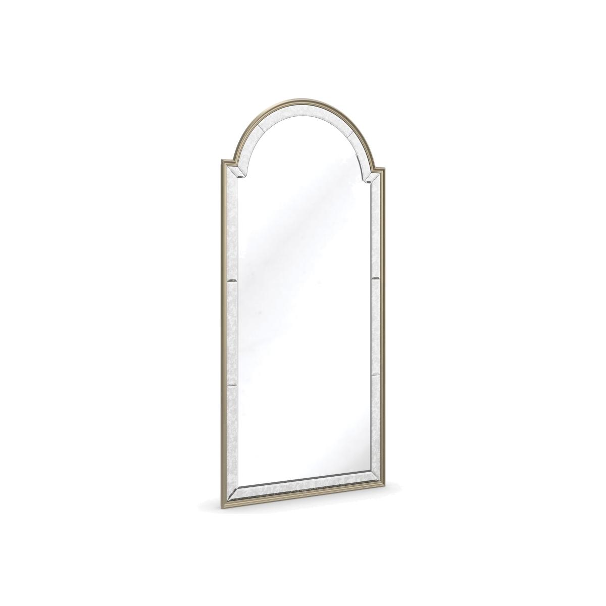 At nearly seven foot tall, this lavish floor mirror makes a grand statement, mixing casual glamour with the romance of a treasured antique. Designed to lean, rather than be hung, its classic Arabic window shape is framed in a Silver Shadow finish with an antique mirror border for a vintage aesthetic. Brightens a room and creates a sense of space; perfect for the boudoir, living or dining room. Frame in Silver shadow with antique mirror border. Clear mirror in center.