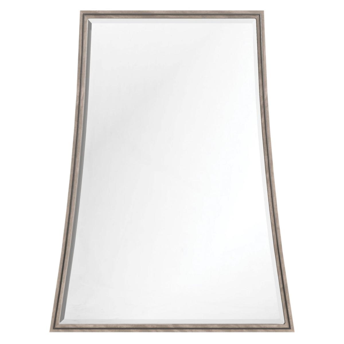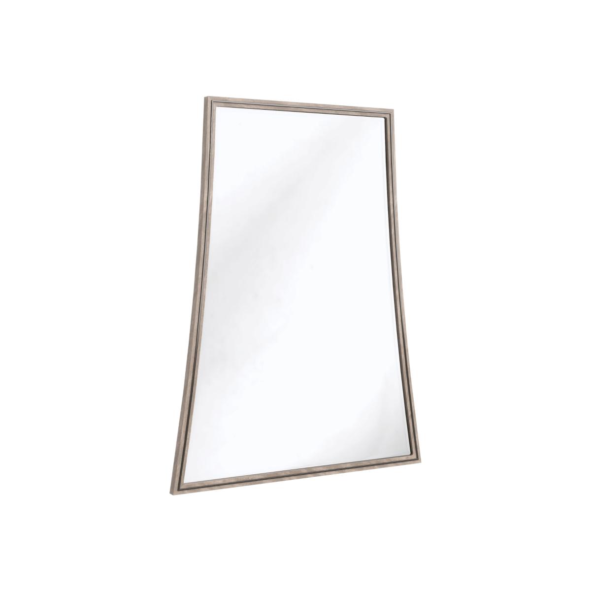 At first glance, it's a casual mirror with a tall, pillbox shape. Upon closer look, delicate detailing and an intentional mix of materials leaves one with a more glamorous impression. Features a Silver Curupixa wood veneer frame, finished in an earthy Mountain Smoke finish and trimmed in a Deep Bronze metal inlay. Makes an intriguing focal feature when hung above credenzas, media consoles, and large dressers. Wood frame in Mountain Smoke with metal trim in Deep Bronze. 3/4 Beveled mirror.