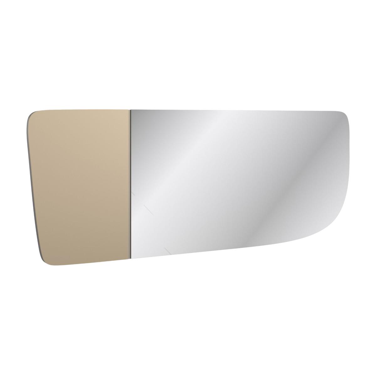 Modern art or avant garde mirror, this looking glass adds an alluring focal feature to living interiors. A beautiful, frosted bronze finish mixes with mirrored space for reflection, accentuated by a thin line of metal in Smoked Stainless Steel paint. Lavishly sized and intentionally designed, it makes a memorable statement when hung over a dresser or buffet. Frosted Bronze mirror panel and clear mirror panel with metal accent divider in stainless steel paint. Back metal bracket for wall attachment.