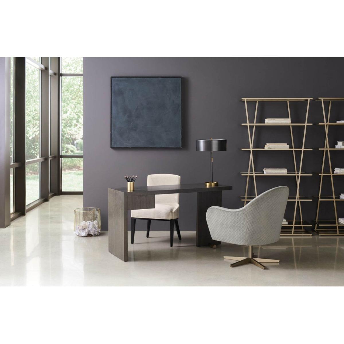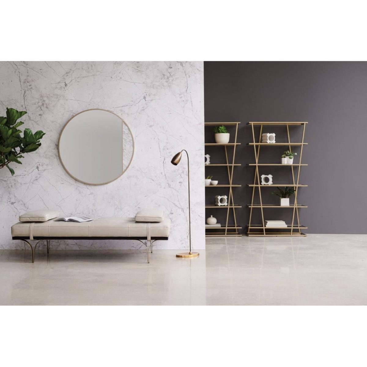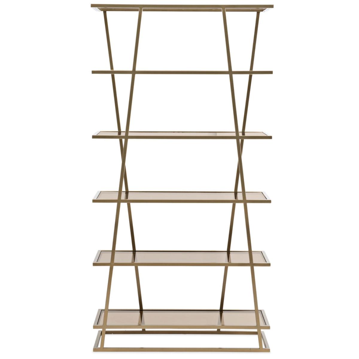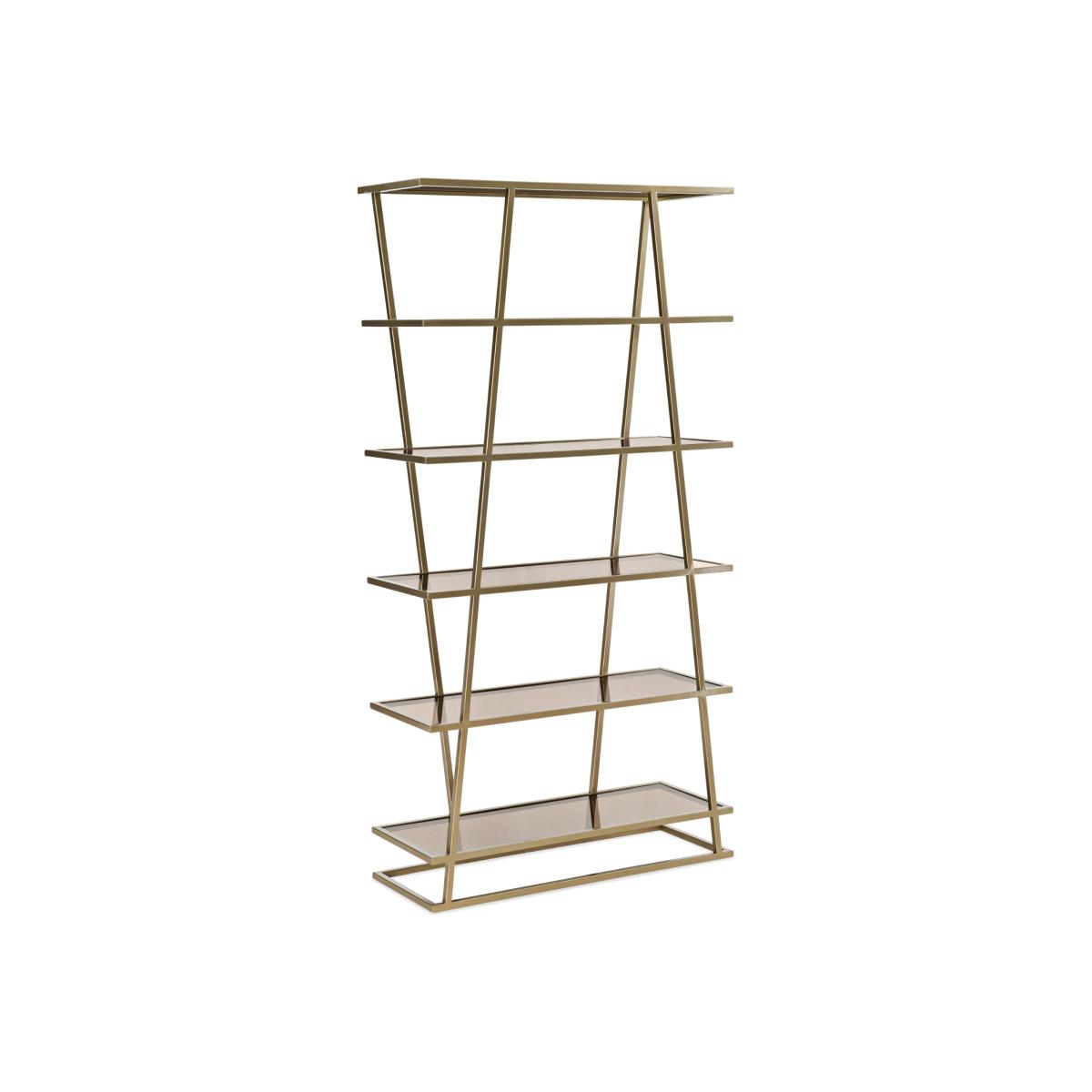 Wow. Just wow. There's no other way to describe the eye-stopping beauty of this elegant etagere. Open, airy, and sophisticated‚ its presence will upgrade the style of any room while adding an essential tall vertical element. A plated-metal frame finished in Lucent Bronze gives it a touch of glamour while six glass shelves tinted in a warm brown provide a place for storage and display. Display one or bunch a few together to create a modern focal point and enjoy the effect of its unmistakable charisma. Plated metal frame finished in Lucent Bronze Smooth Metallic Paint. Six tempered brown tinted glass shelves. Anti-tip hardware package supplied with case. Ships KD.