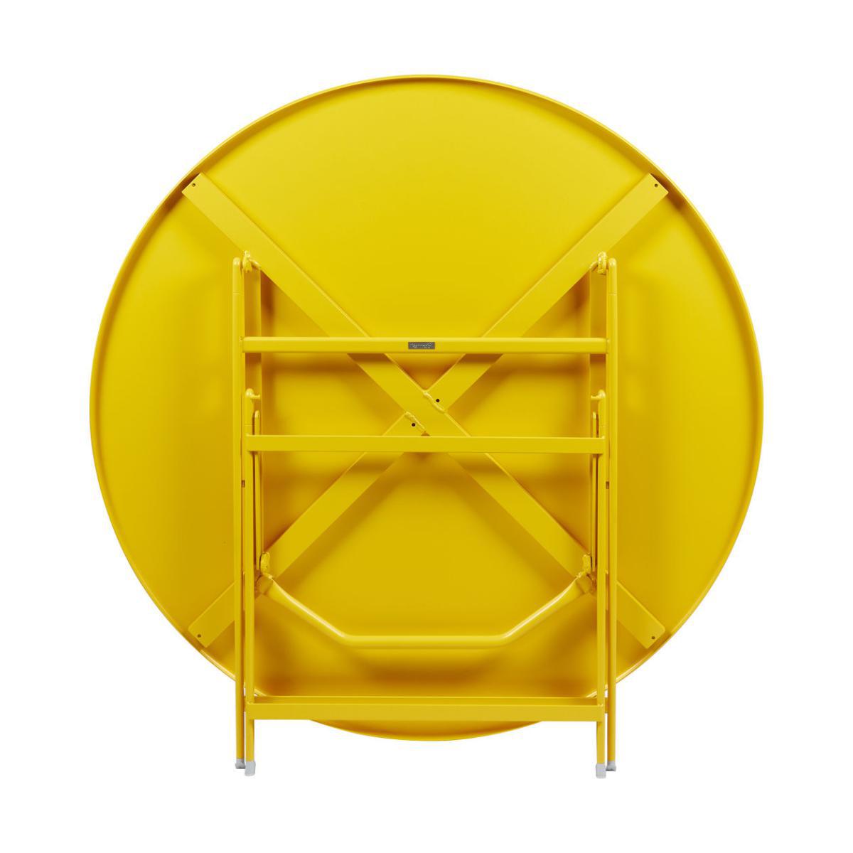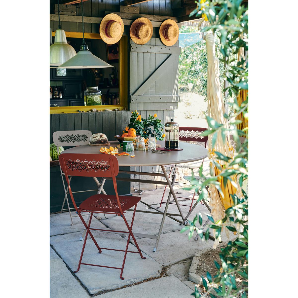 The Caractère tableunfolds and folds up in no time at all! Robust and stable, it withstands the test of time. Ideal for small urban spaces, it is easy to move, easy to fold / unfold (without the top touching the ground when it is folded), easy to store, in short, easy going! This large-sized Caractère table is the largest round folding table on the market! It seats up to 7 people. Its central crossed base stops legs getting constrained. Another plus is the weight: it is light (23 kg, a record for a steel garden table of this size). Timeless, is can go with numerous styles of chair. The Caractère table is available in a variety of conventional and vibrant colours. It is equally well suited to indoor and outdoor, public and private spaces (restaurants, bars, cafés, terraces, parks, etc. ).