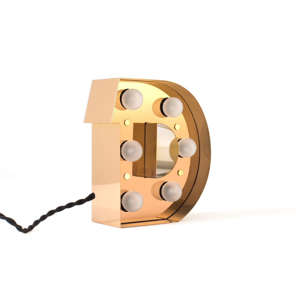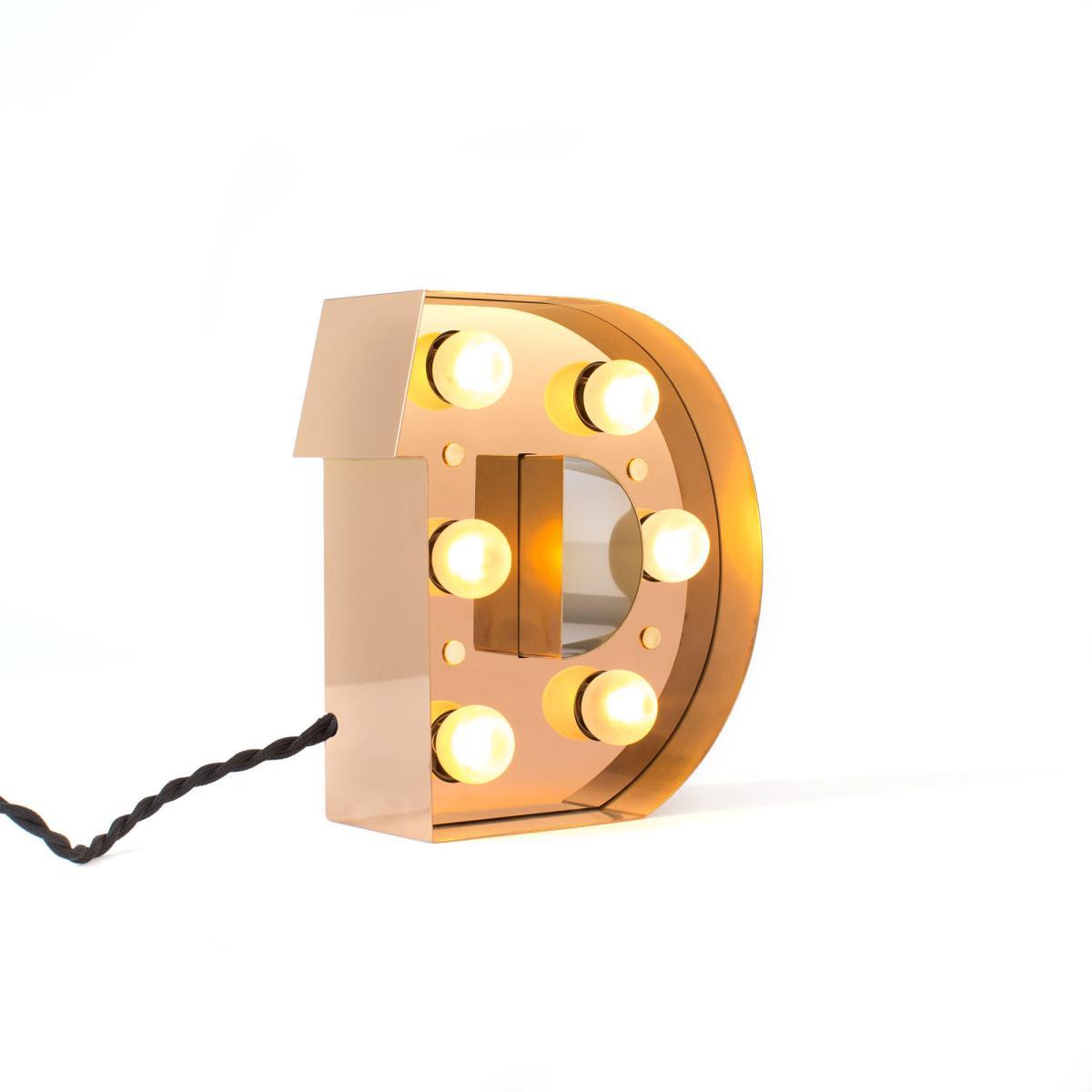 Brighten up your home with personalised messages! The Character collection lets you create a very trendy "arty" atmosphere. With the 26 letters of the alphabet (H 20 cm), you can write what you want: your name, a message, a mantra, the name of a room. All in a kitsch retro Las Vegas-style atmosphere! A very graphic collection, which creates a fun, luminous alphabet. You can use each letter separately, as a table lamp. These luminous letters can be placed on a bookcase, a fireplace, a shelf. To form the desired word. You can also hang them on a wall like a wall light. Made of metal with LED bulbs (supplied), each letter comes with a black fabric cable and plugs into the mains. Cable switch.
