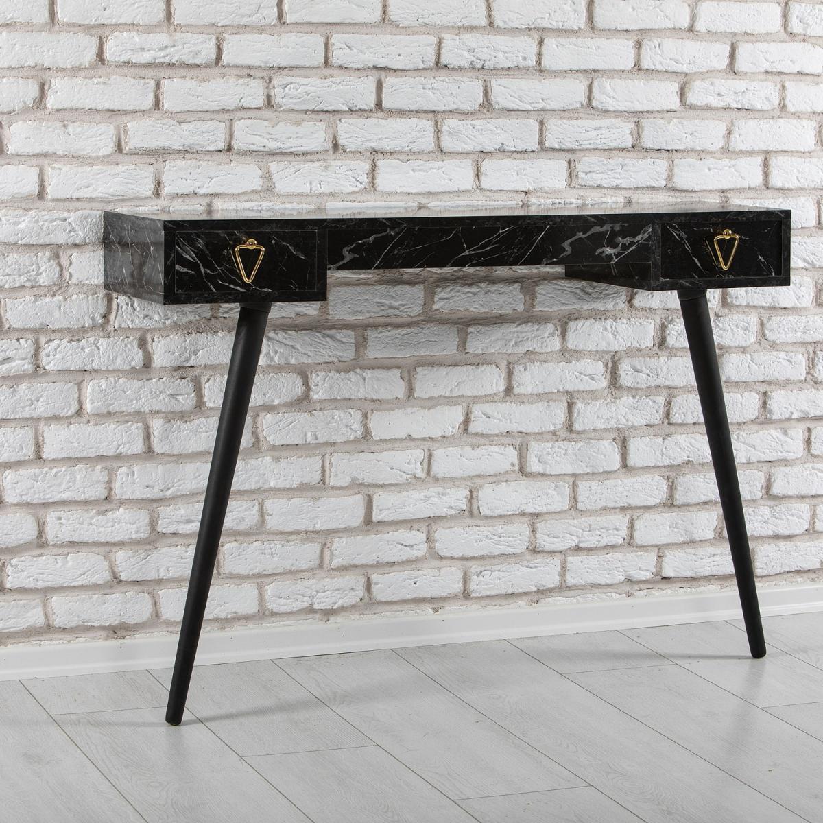MATERIAL The dresuar console table is made of an 18 mm thick quality melamine-coated particleboard. The manufactured wood surface is water-resistant to some extent and the edges are banded with PVC edge banding tape. Legs are solid beechwood. The drawers are designed in classic style without metal slides. They are secured with a metal plastic pin which prevents them from falling. First-class assemblyinstallation hardware and accessories are used. Our products are produced from certified quality raw materials that do not contain carcinogenic substances and comply with European Union health norms. CLEANING You can clean your furniture with a dry cloth. Avoid prolonged contact of your product with moisture and water. ASSEMBLY The product will be delivered to the customer in the original package as disassembled. It is designed to be assembled by the customer using a power drill and screwdriver. Assembly instruction and installation hardware are included in the package. For fast and error-free installation, product parts are numbered with stickers in accordance with the assembly guide.