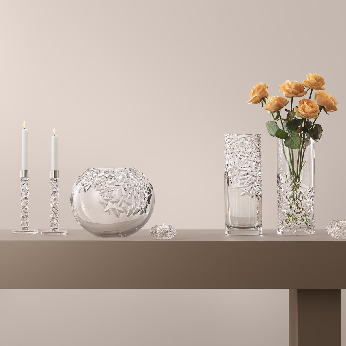 As a small sparkling crystal ball, the Carat vase from Orrefors is guaranteed to be a beautful detail in your home. The spherical vase is part of the exclusive Carat series, designed by Lena Bergström and inspired by jewels and precious stones. This series has a distinct, asymmetrical cut that gives it a modern feel but with a touch of Nordic romance, permating all parts of the collection. This luxury vase fits all kinds of cut flowers and can also be matched with other products! Choose from different sizes.