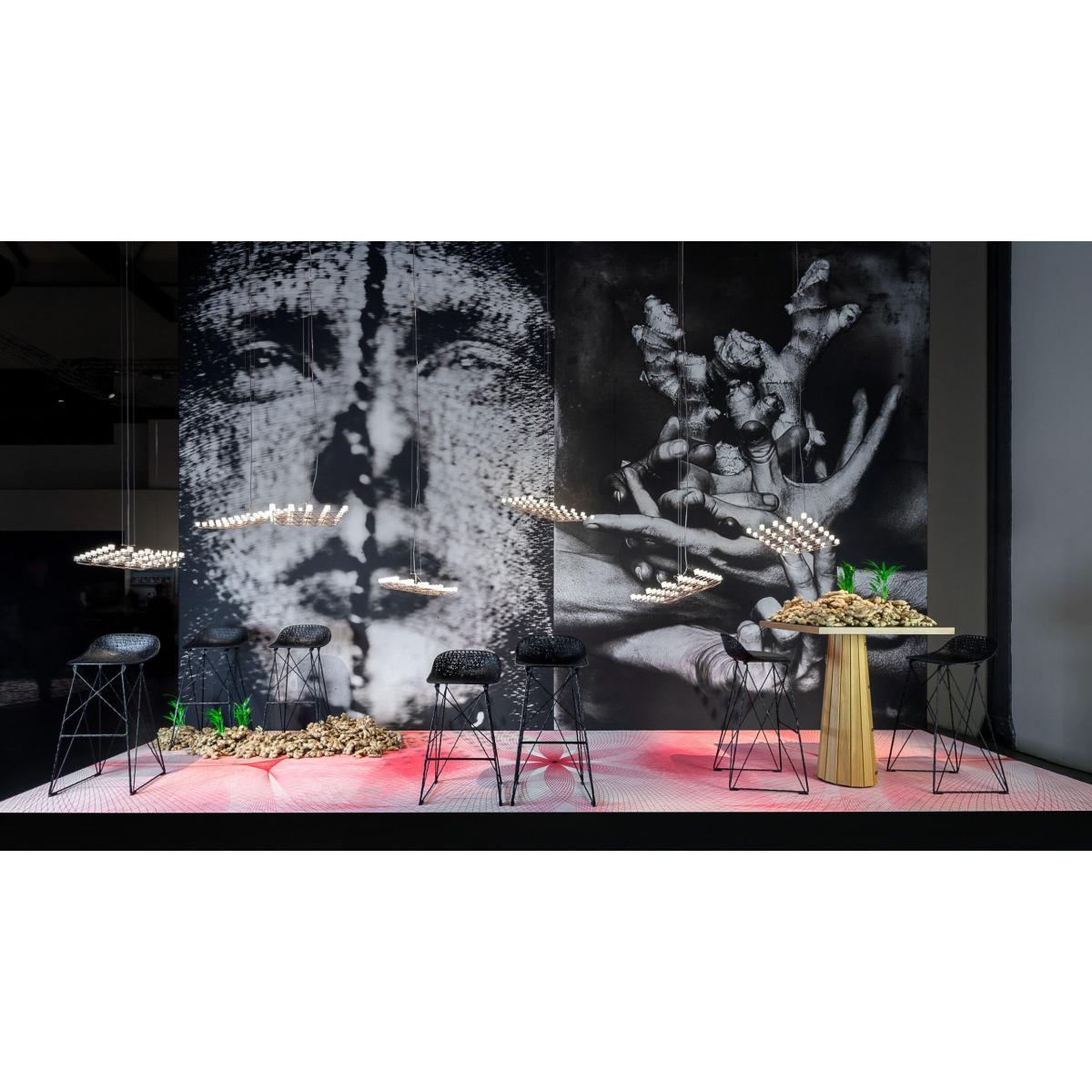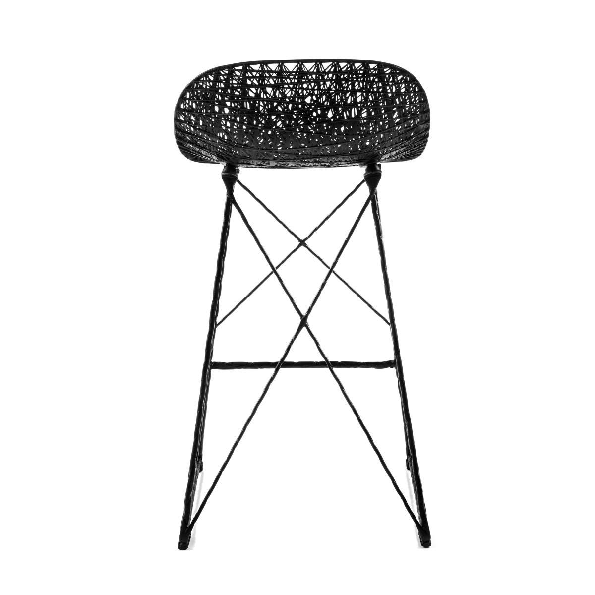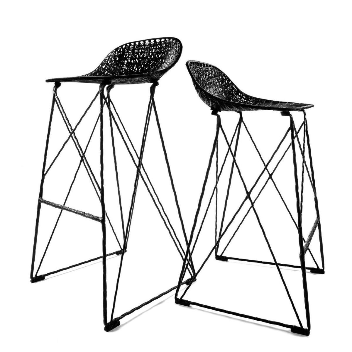 The carbon chair& bar stool'suncomparable lightness both visualy and physically is due to the structure. Individual strands of carbon interwoven to create a strong body and intricate aesthetic. An amazing bar stool for outdoor or indoor use.