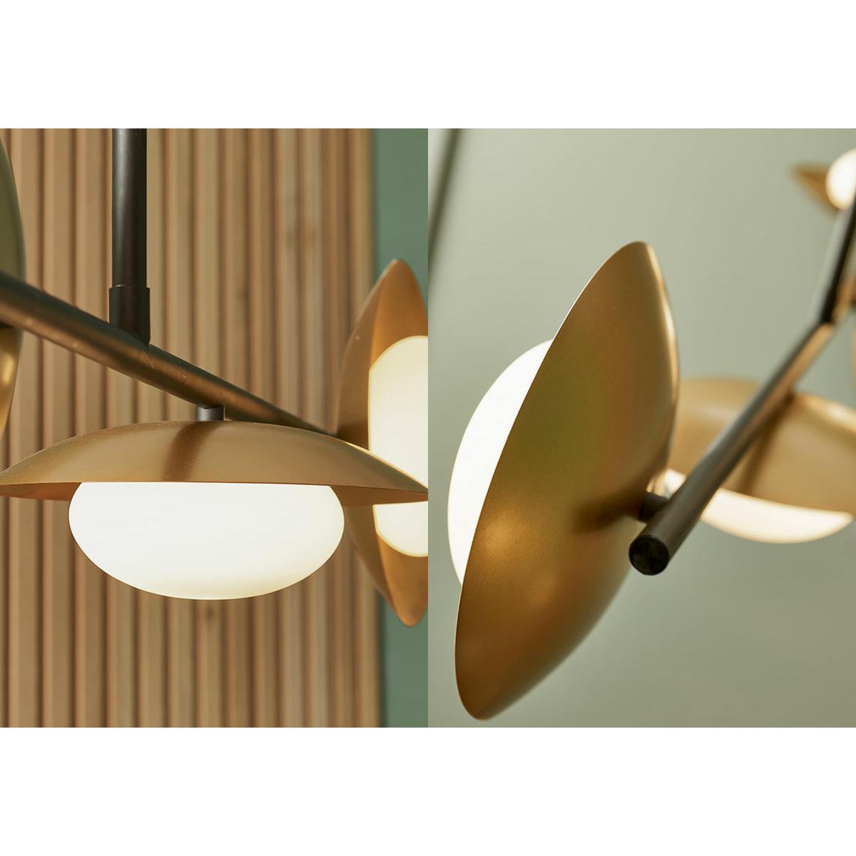The Cardassian lighting duo revels in its own uniqueness, oozing artistic splendour and distinctive form with enchanting opal glass pebbles of light. With this large fixed ceiling light, blackened bronze piping naturally offsets the brushed gold lampholders, while the placement of these lampholders ensures an ambient light is directed into multiple areas of the room. Also available as a table lamp, you are bound to impress with this one-of-a-kind range.