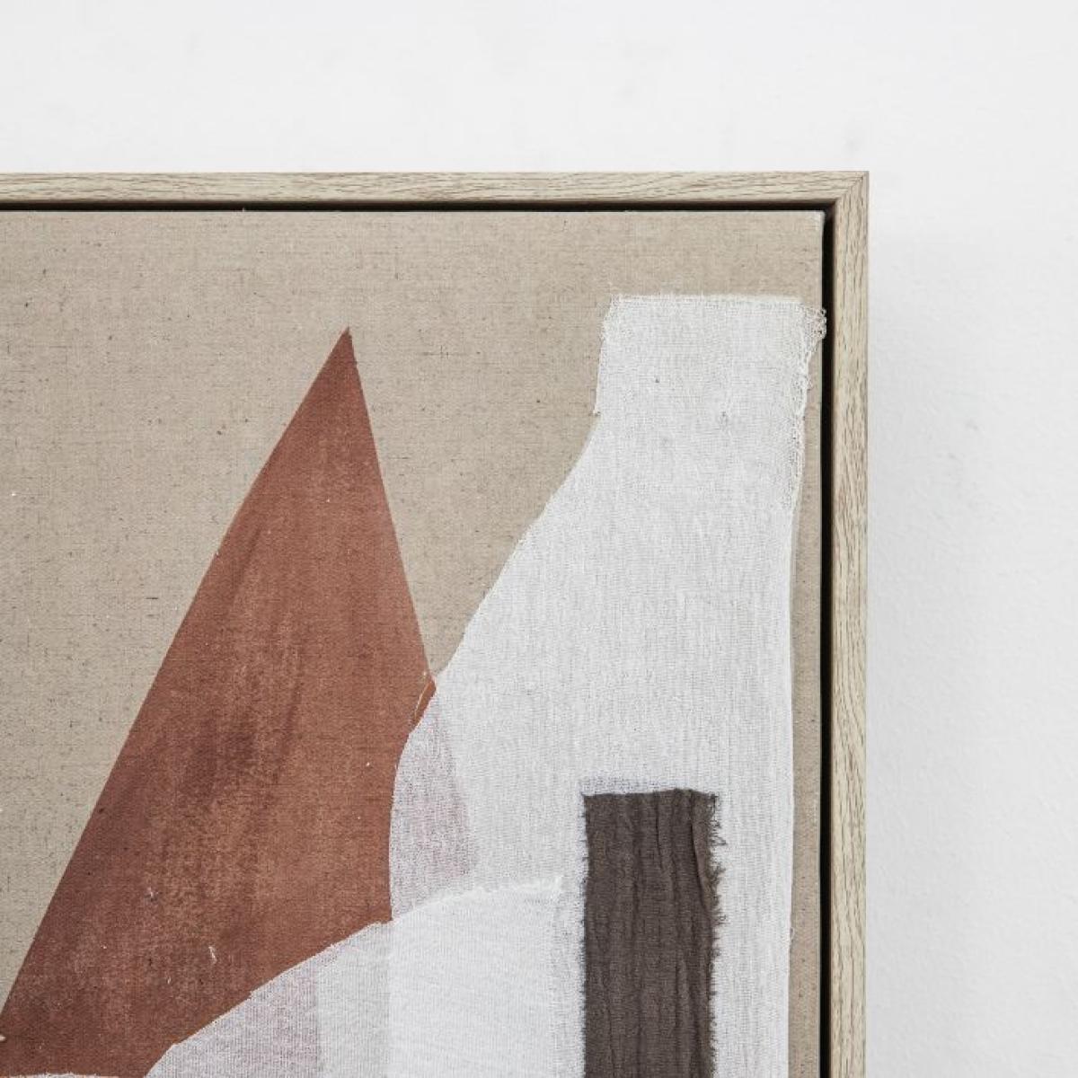 I really like this piece because of its versatile abstract design and textured finish, which adds depth and visual interest to any space. It works particularly well in contemporary or minimalist interiors, where its neutral tones can complement a pared-back colour palette, but it can also inject a subtle layer of sophistication into more eclectic or bohemian settings. Practical styling tips include pairing it with simple, modern furniture and keeping the surrounding accessories understated to let the artwork stand out. For a balanced look, hang it at eye level above a sofa or console table, and consider layering it with other neutral-toned prints or textiles to create a cohesive, curated feel.