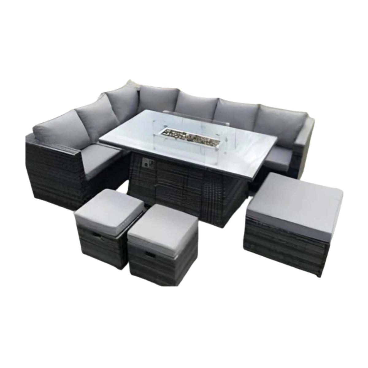 Cardiff 9 Seater Rattan Corner Sofa Set with Fire Pit - Dark Grey
