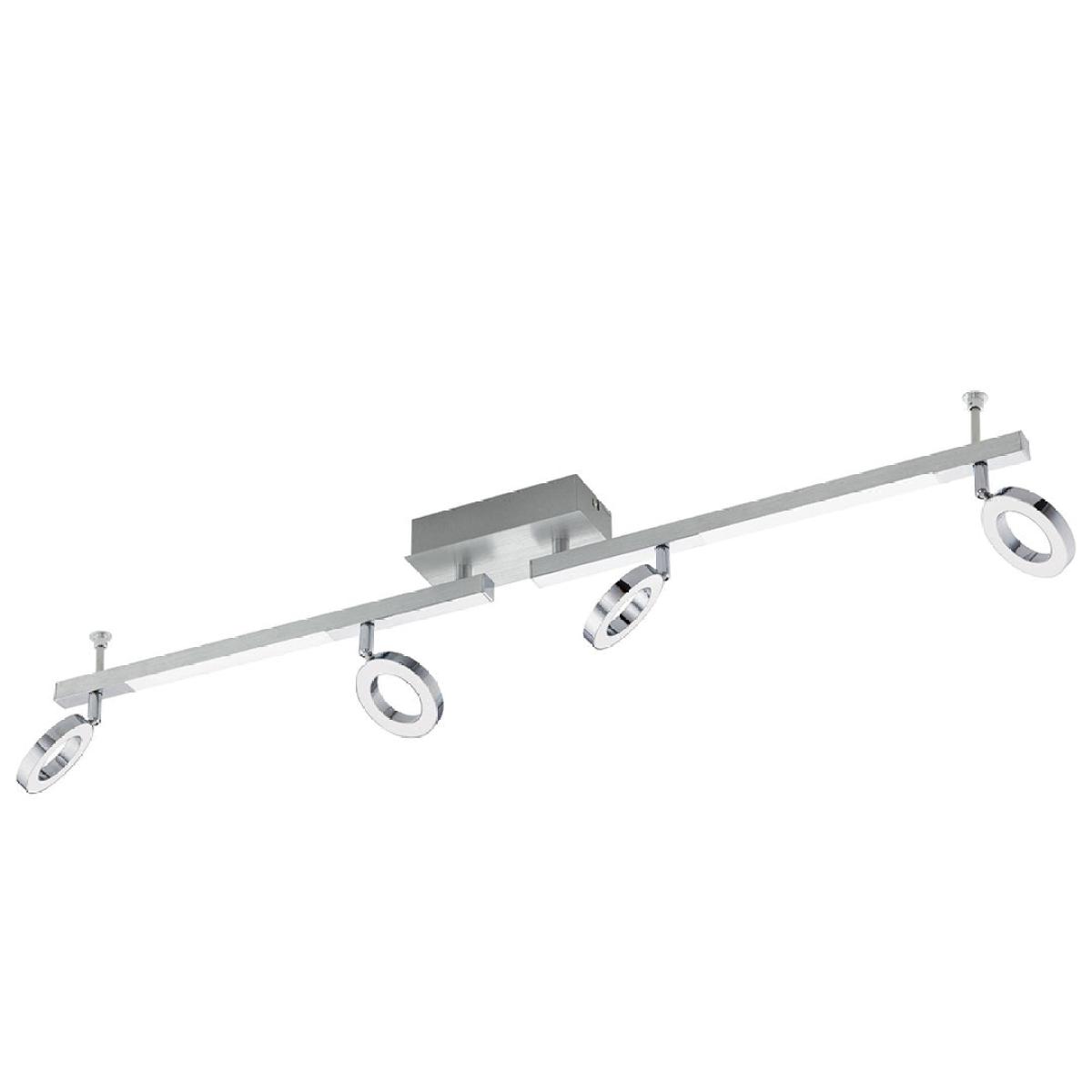 Modern LED spotlight bar boasting a satin nickel finish. An elegant addition to your home, this multifunctional LED spotlight bar is a clever design from Eglo. Featuring 4 ring LED spotlights, which can be arranged to illuminate different areas of a room, this spotlight also integrates two LED strips on the main frame, providing general room illumination. Boasting a sleek satin chrome finish throughout, it is perfect for use in lounges, kitchens, hallways and bedrooms. Modern LED spotlight bar boasting a satin nickel finish. An elegant addition to your home, this multifunctional LED spotlight bar is a clever design from Eglo. Featuring 4 ring LED spotlights, which can be arranged to illuminate different areas of a room, this spotlight also integrates two LED strips on the main frame, providing general room illumination. Boasting a sleek satin chrome finish throughout, it is perfect for use in lounges, kitchens, hallways and bedrooms.