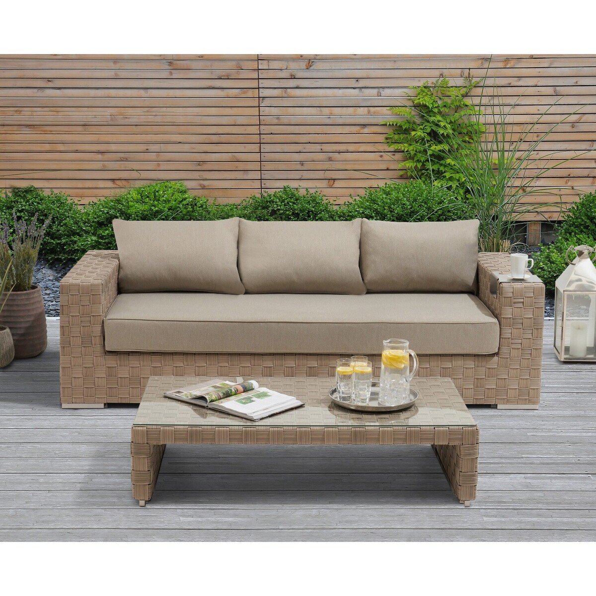 This stylish wicker coffee table from Cardinal can be used just as easily indoors as outdoors, in a lounge or on a terrace. Contemporary and versatile, it pairs perfectly with Cardinal garden furniture. Taupe wicker weave (100% polyethylene) offers durability Sturdy powder-coated aluminium tube frame5mm tempered safety glass table top is simply wiped clean. Complements the entire Cardinal garden collection. Choose from grey, ivory and cream or taupe and brown hues