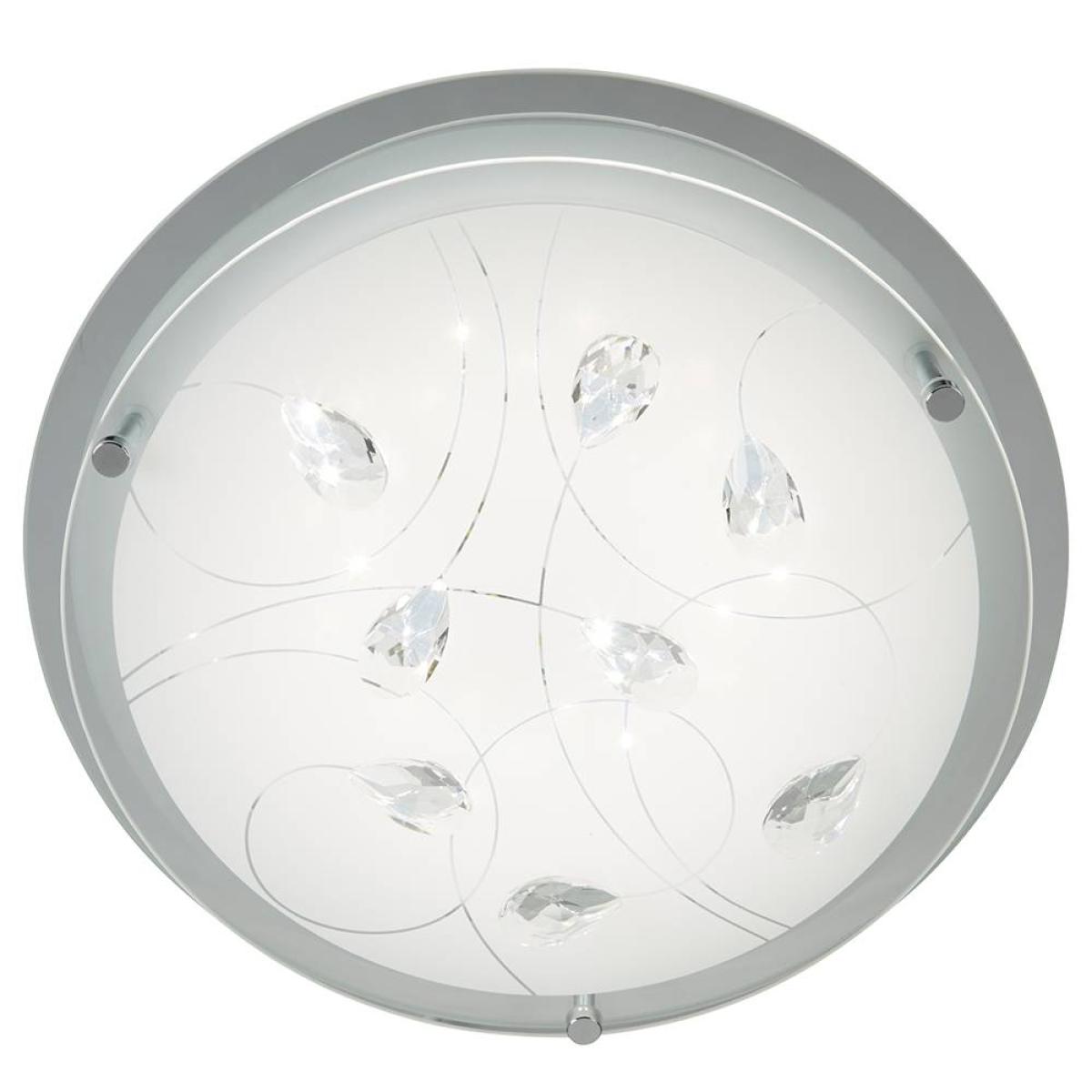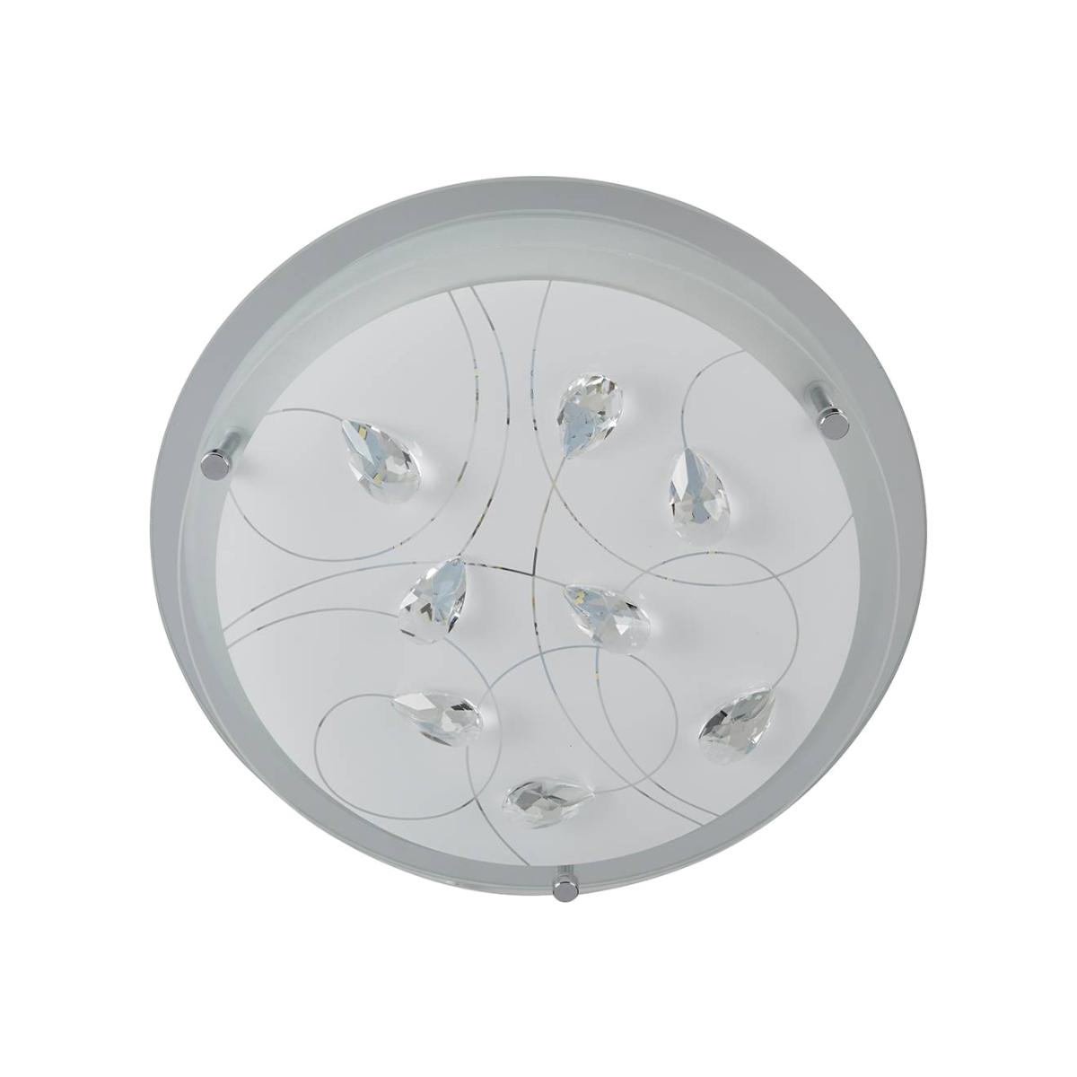 I love this flush ceiling light for its clean, contemporary look with subtle detailing that adds a touch of elegance. It's versatile enough to work well in modern, minimalist, or even slightly traditional interiors, providing a soft, ambient glow thanks to the frosted cover that diffuses light evenly. When styling with this lamp, consider pairing it with neutral tones or soft pastel palettes to enhance its understated sophistication. Practical tips include placing it in living rooms, kitchens, or hallways for a seamless lighting option that doesn’t disrupt your overall decor, while the subtle crystal details can be highlighted with accent lighting or mirrored surfaces for added sparkle.