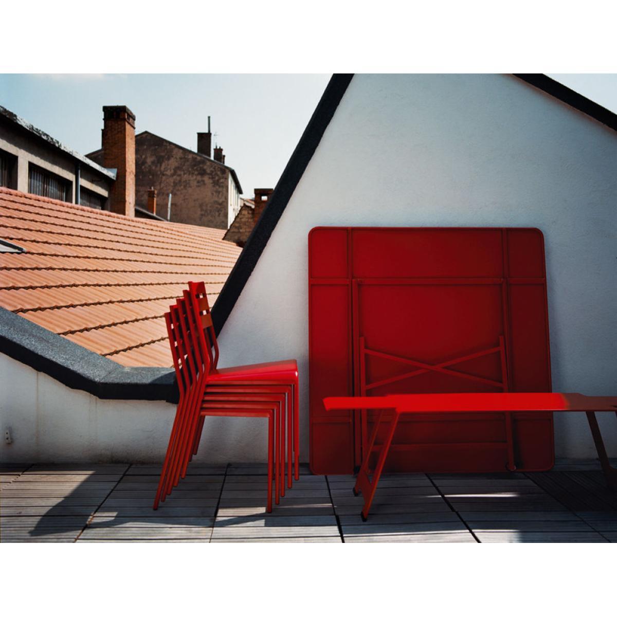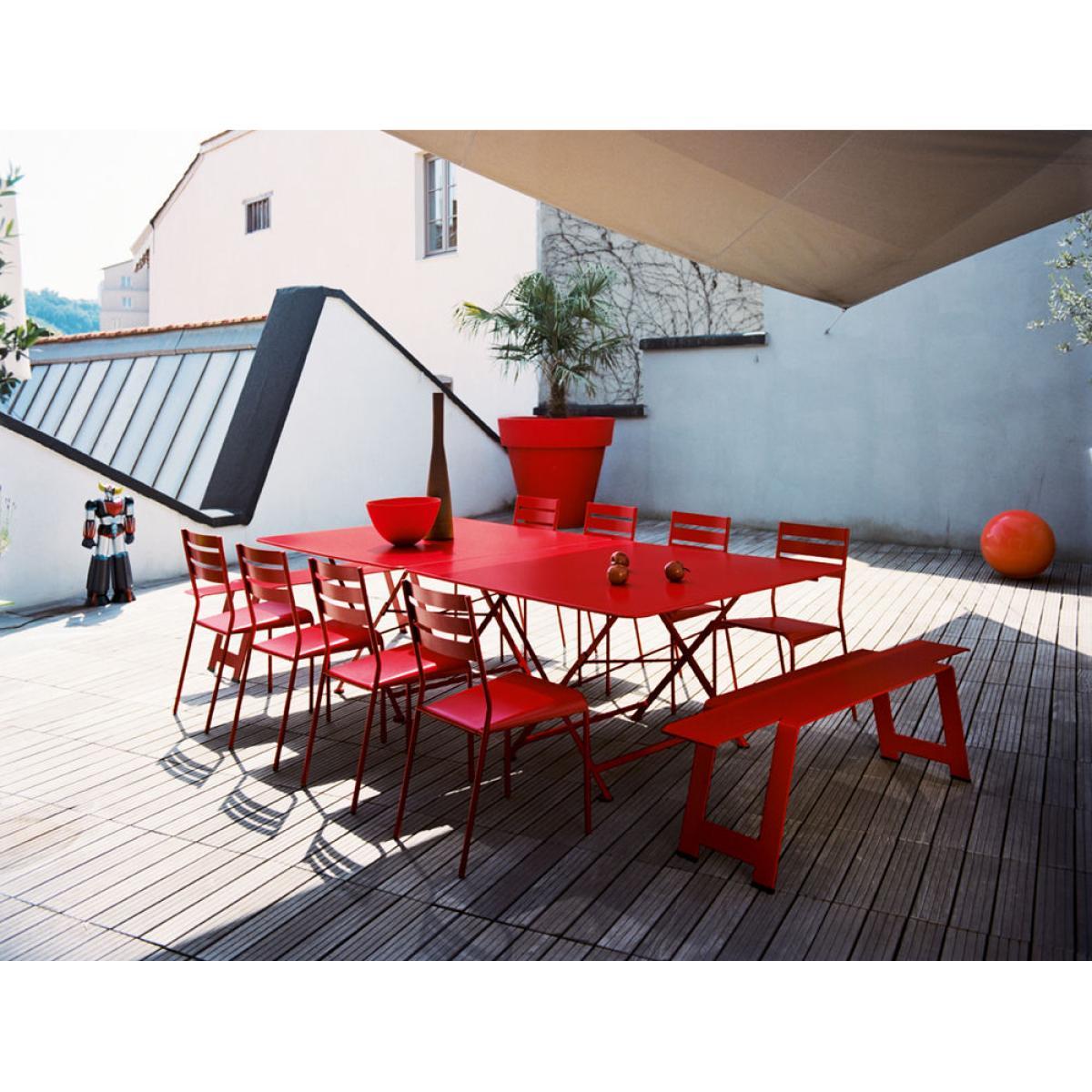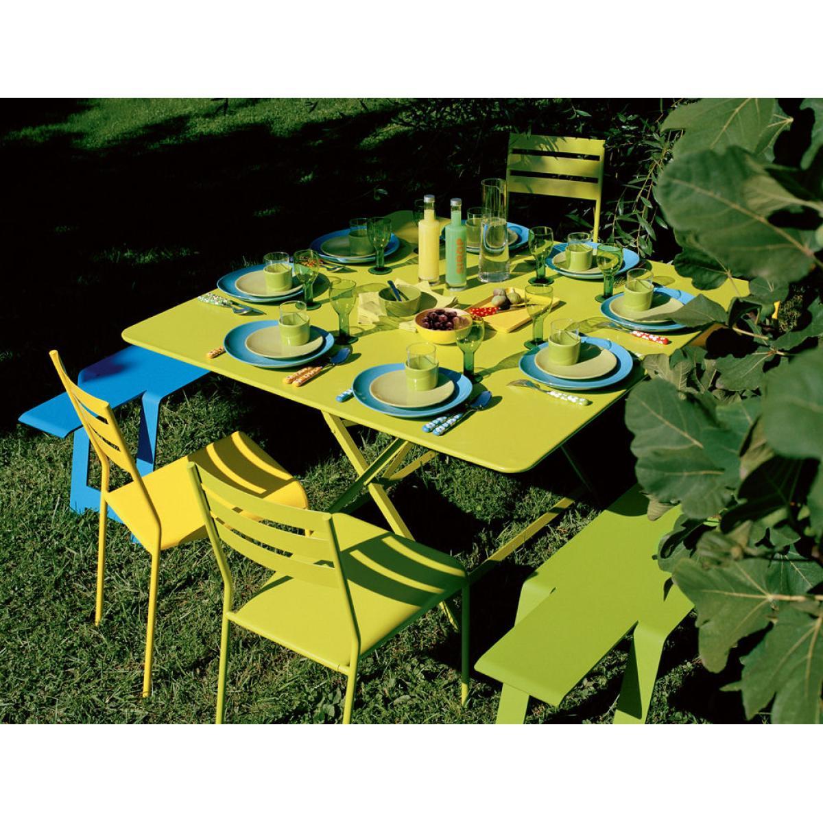 Cargo is a large folding table for outdoor use. Practical, colorful and easy to live with, it brings together 8 guests in joy and good humor. Declined in shades of gay and vitamins, it creates a festive atmosphere.