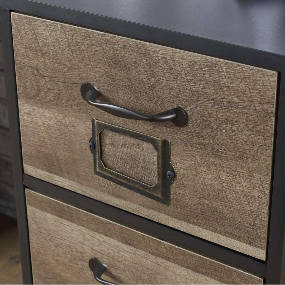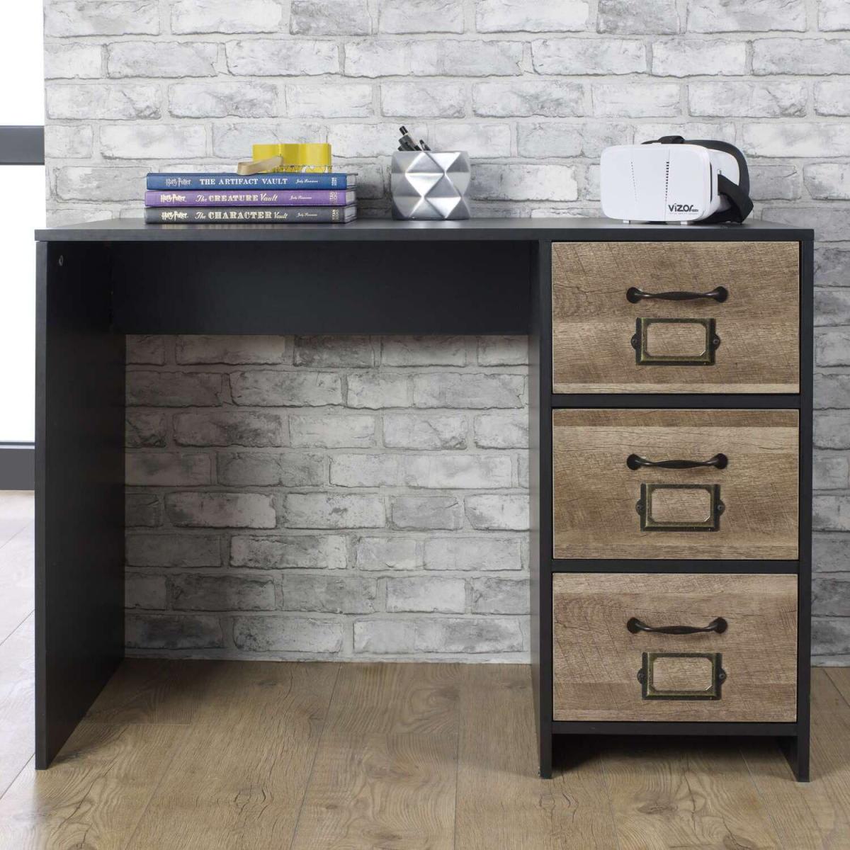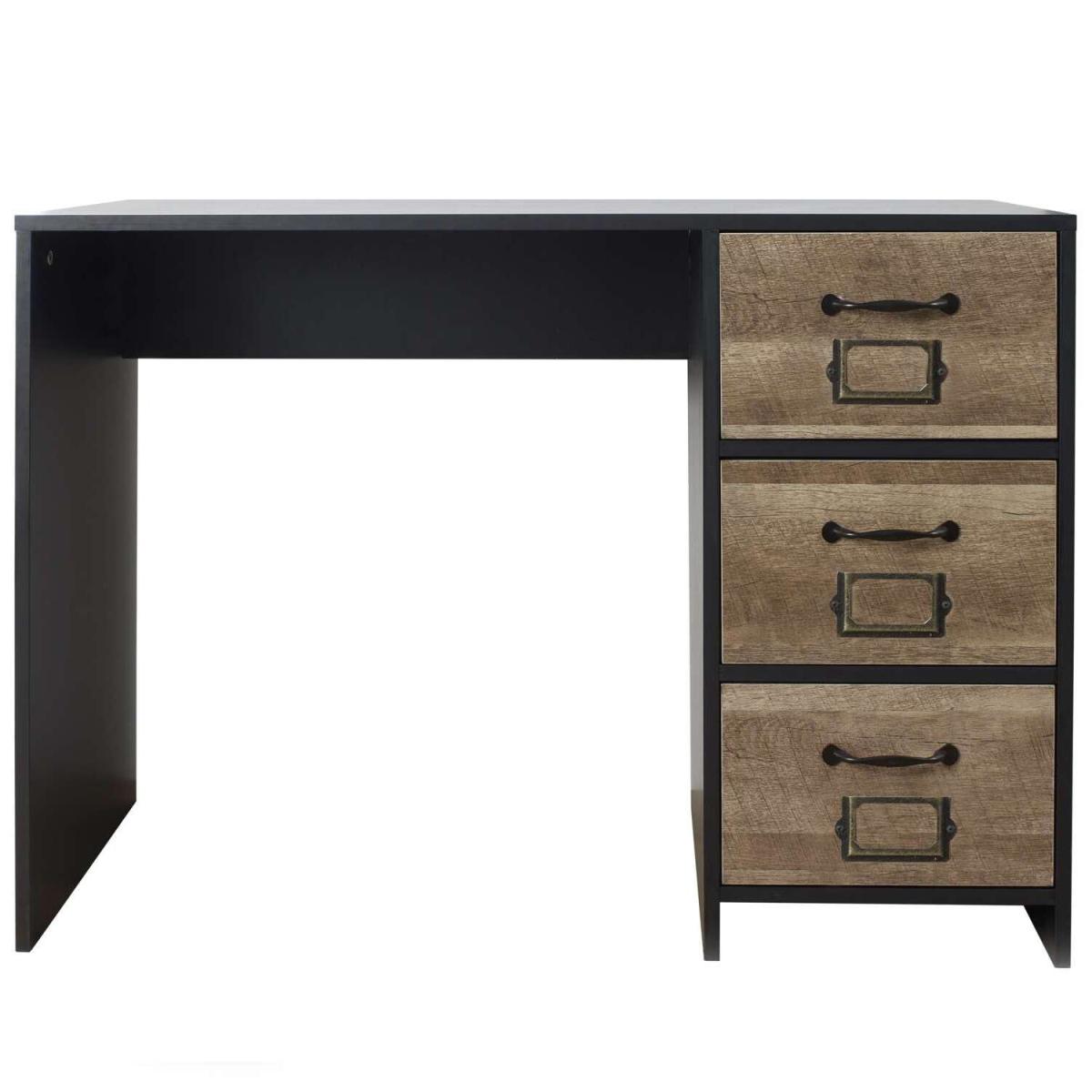 Cargo Style Wood-Effect Office Desk with 3 Drawers in Black - Brown