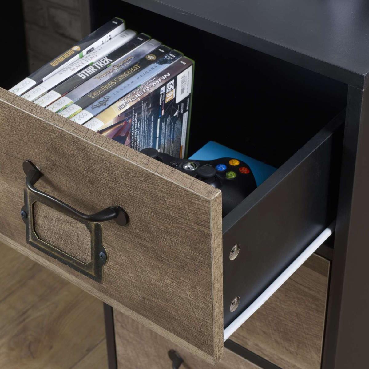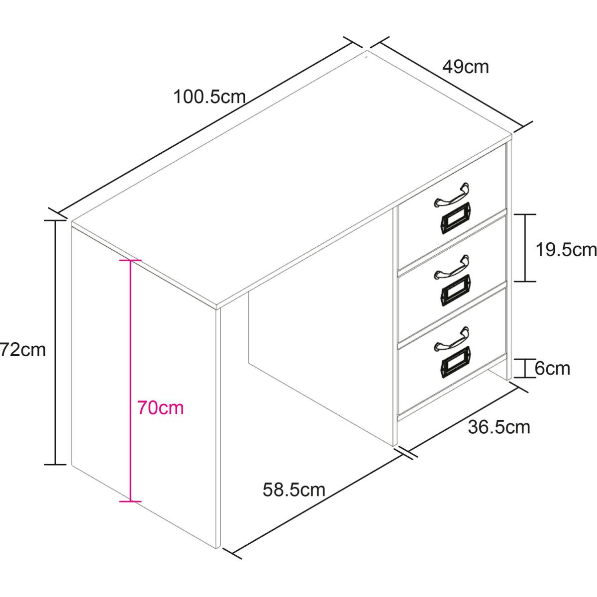 Create an industrial feel with the Cargo 3 Drawer Desk, inspired by retro-lockers while combining dark wood-effect and metal materials. Featuring 3 spacious drawers with a large table top workspace, the unit works perfectly as a bedroom storage unit or working desk area. Complete with cut-out grooves and a vintage-inspired name tag slot, this trendy desk can make a room feel rustic in no time.