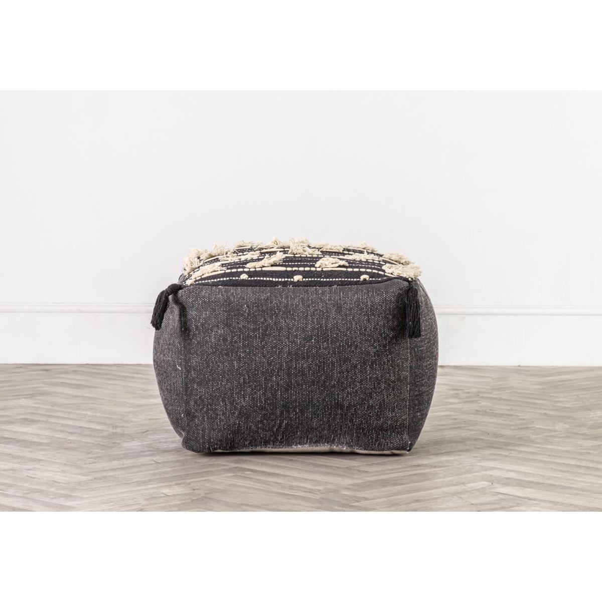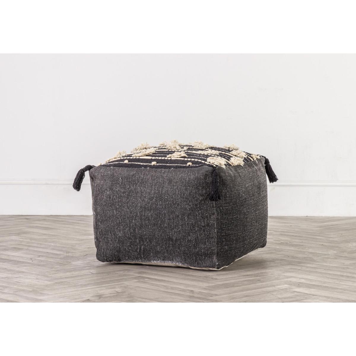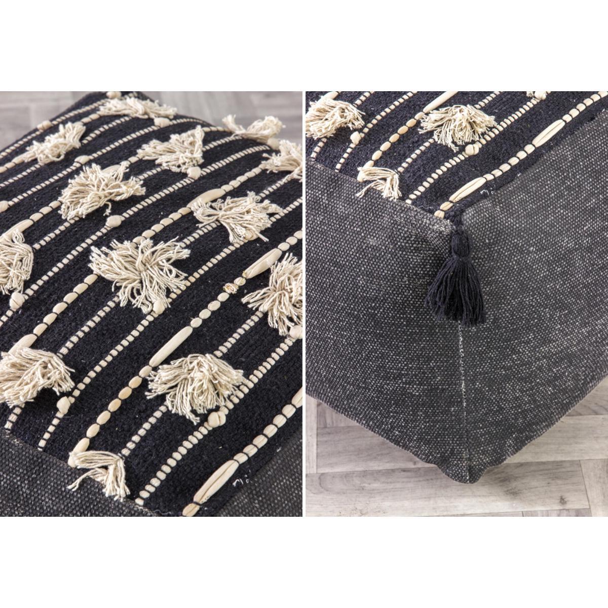 Invitingly comfortable, the Carignan Monochrome Pouffe is a perfect addition to your home. Made from Black Cotton with White stitched and tufted detail on the top making the perfect contrast and finished with black corner tassels - this is the perfect place to put up your feet and relax, for use as extra seating, or simply somewhere to put down your book.