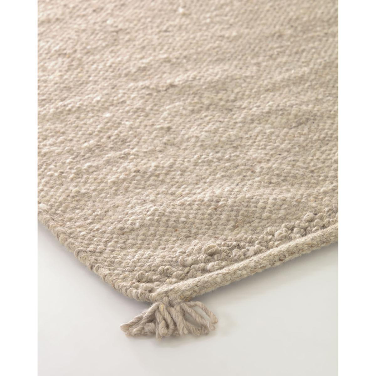 This beige rug is a versatile choice for various interiors, thanks to its neutral tone that effortlessly complements both modern and traditional spaces. I love it for its understated elegance and ability to add warmth without overpowering the surroundings. It works particularly well in living rooms or bedrooms with soft furnishings in muted or earthy colours, creating a calm, cohesive look. For practical styling, I recommend layering it with textured cushions or throws to add depth. To keep it looking its best, consider using a non-slip underlay, especially in high-traffic areas, and regular vacuuming will help maintain its fresh appearance. Overall, this rug's simple yet refined aesthetic makes it a reliable and stylish foundation for any room.