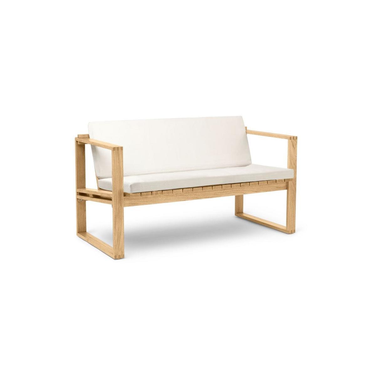 In 1959, Danish architect Bodil Kjær launched her Indoor-Outdoor Series, which included the supremely comfortable BK12 lounge sofa. Crafted from solid teak with a slatted seat and back, the sofa displays the same geometric sensibility that underpins the rest the collection. This quality is further enhanced by the armrests, legs and runners, which are morticed together to form sleek squares. Conceived as an architectural element, with proportions designed accordingly, the BK12 lounge sofa is suitable for indoor and outdoor use.