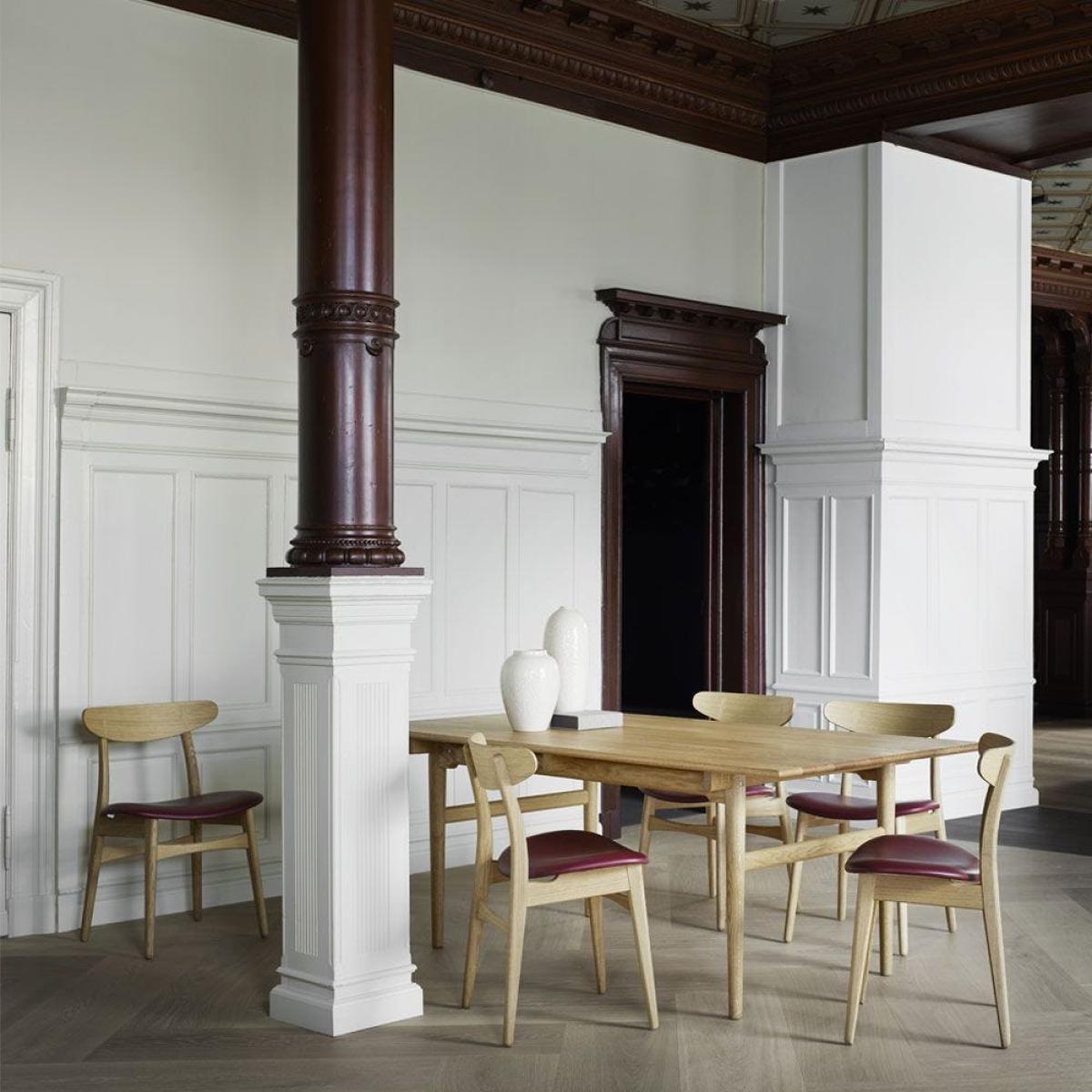 I love the CH30 for its streamlined silhouette and gently curved backrest - it brings a light, airy feel to both Scandi-inspired and modern eclectic schemes. The slim oak frame and minimal seat allow it to tuck neatly into smaller kitchens or brighten a busy dining area without overwhelming the space. Styling-wise, pair it with a simple natural-wood table and linen cushions for a classic northern European look, or introduce a deep-toned leather pad to add warmth. It sits equally well against pale walls or richer, muted hues, and a low-pile wool rug beneath will help define the setting while keeping things grounded.