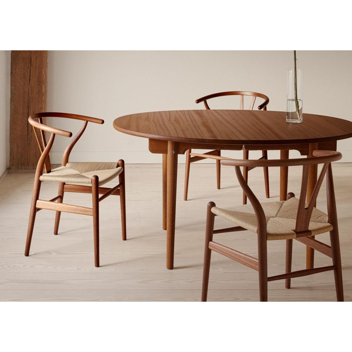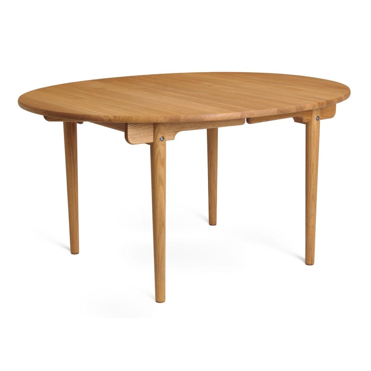 Designed by Hans J. Wegner in 1962, the CH337 Dining Table embodies the elegance and functionality of Danish modern design. Crafted in solid wood, it features a refined elliptical tabletop and graceful tapered legs that give a light yet sturdy appearance. Ideal for everyday dining or special occasions, the CH337 seats 4–6 but can extend to accommodate up to 8 with additional leaves. A timeless piece that adapts beautifully to changing needs.
